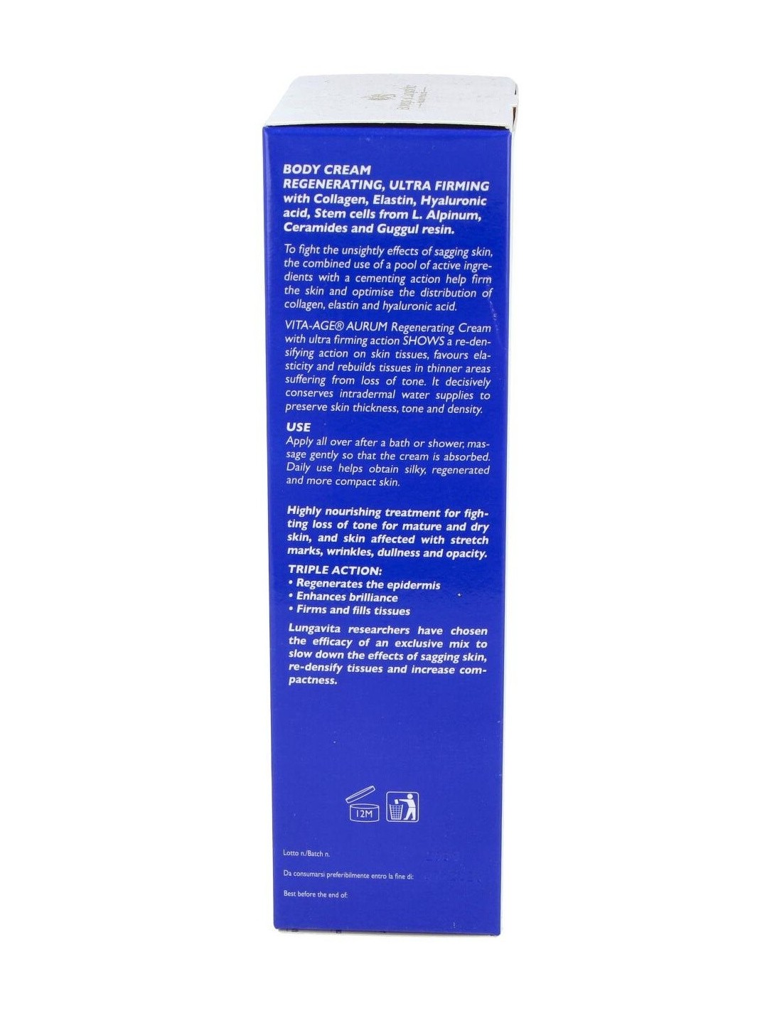 BOTTEGA DI LUNGAVITACon una acción ultra-reafirmante, potenciado por el uso de ingredientes celulares activos con extraordinarias propiedades biológicas. Esta crema ralentiza la relajación de la piel, redensifica los tejidos y aumenta la compacidad de la piel en el cuerpo.