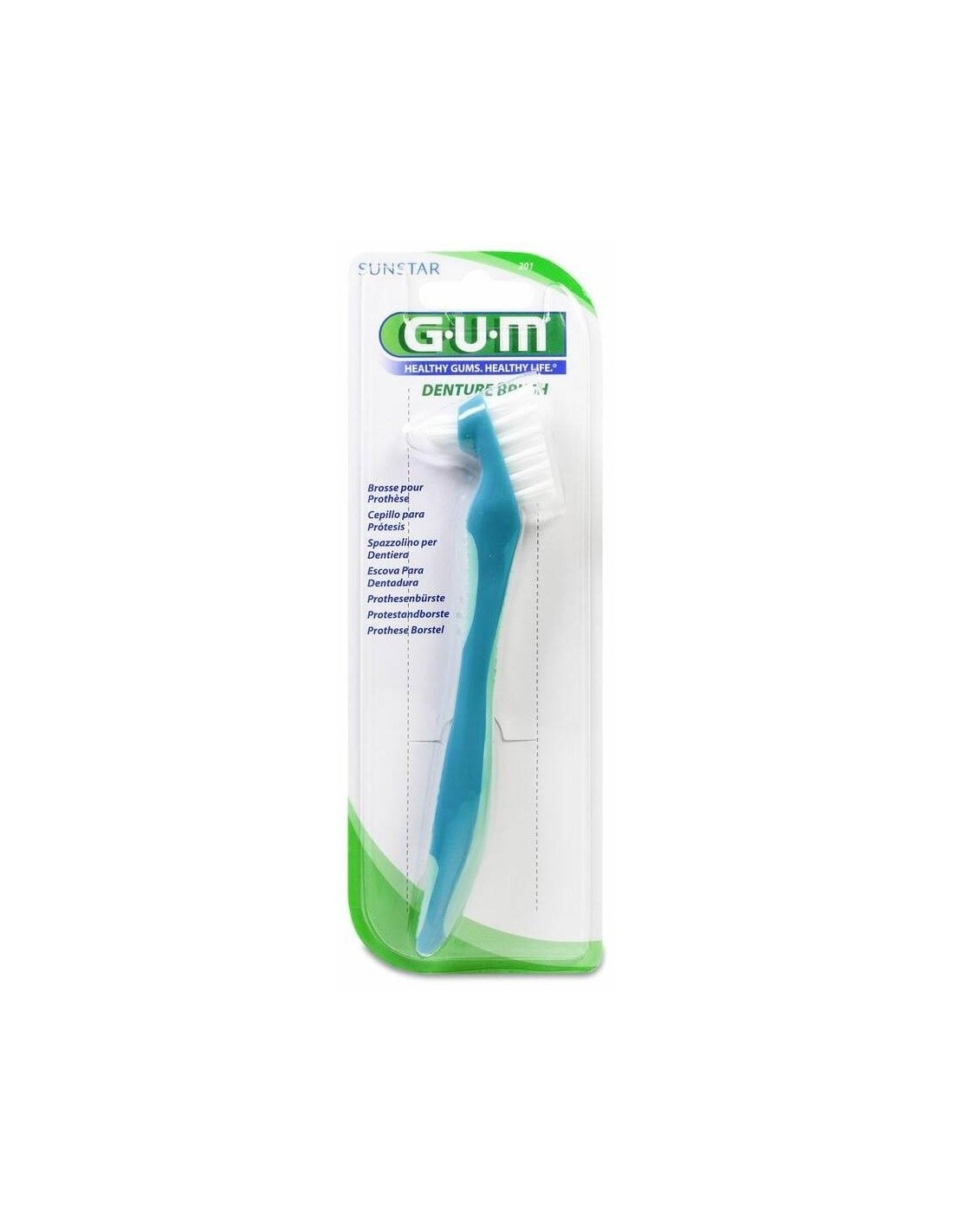 El cepillo de prótesis GUM se ha diseñado para ayudar a simplificar la rutina de higiene bucal para pacientes con prótesis. Este cepillo de nailon dispone de dos partes. Una con filamentos planos para limpiar con eficacia las superficies de la prótesis y otra con forma cónica para limpiar pequeñas zonas de difícil acceso. Su cómodo mango en ángulo con empuñadura mullida proporciona un mejor control durante el cepillado.