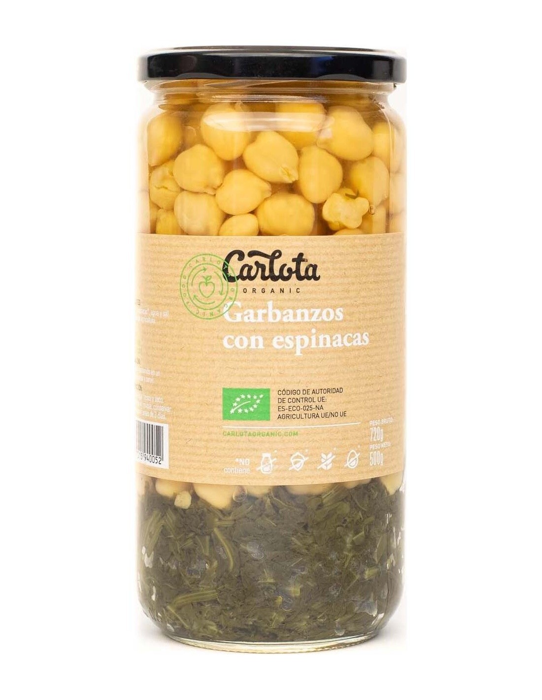 CARLOTA ORGANICGarbanzos con espinacas frescas de agricultura ecológica. Sin ningún aditivo artificial.