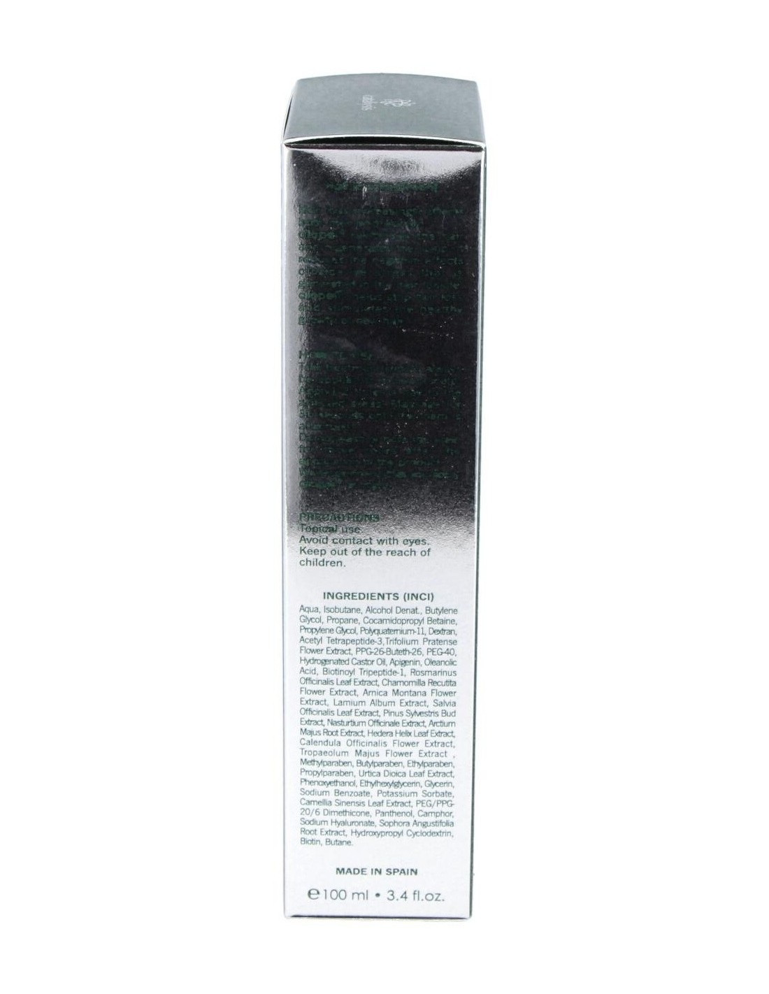 Aqua. Alcohol. Butylene glycol-dextran-acetyl tetrapeptide-3-trifolium pratense flower extract. Butylene glycol-PPG(26)-botnet(26)-PEG(40) hydrogenated castor oil-apigenin-oleanolic acid- biotinoyl tripeptide-1. Cocamidopropyl betaine. Rosemarinus officinalis leaf extract. Salvia officinalis leaf extract. Urtica dioica leaf extract. Chamomilla recutita flower extract-arnica montana flower extract-lamium. Album leaf extract-nasturtium officinale extract-arctium majus root extract-citrus limon peel extract- hedera helix leaf extract. Polyquaternium 11. Phenoxyethanol-ethylhexylglycerin. Camelia sinensis leaf extract. Pinus pinaster pine extract. PEG-PPG-20/6 Dimethicone. D-Panthenol. Camphor. Sodium hyaluronate. Sophora angustifolium root extract- Hydroxypropyl Ciclodextrin. Biotin