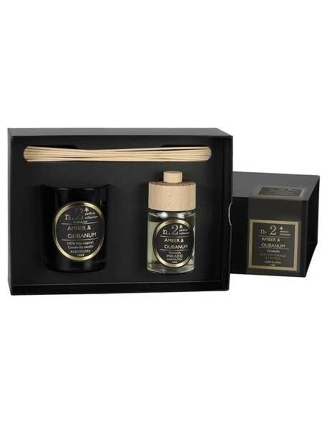 Cofre regalo que incluye difusor de varillas y vela perfumada de la colección Numbers. Presentado en una elegante caja de color negro satinado.
