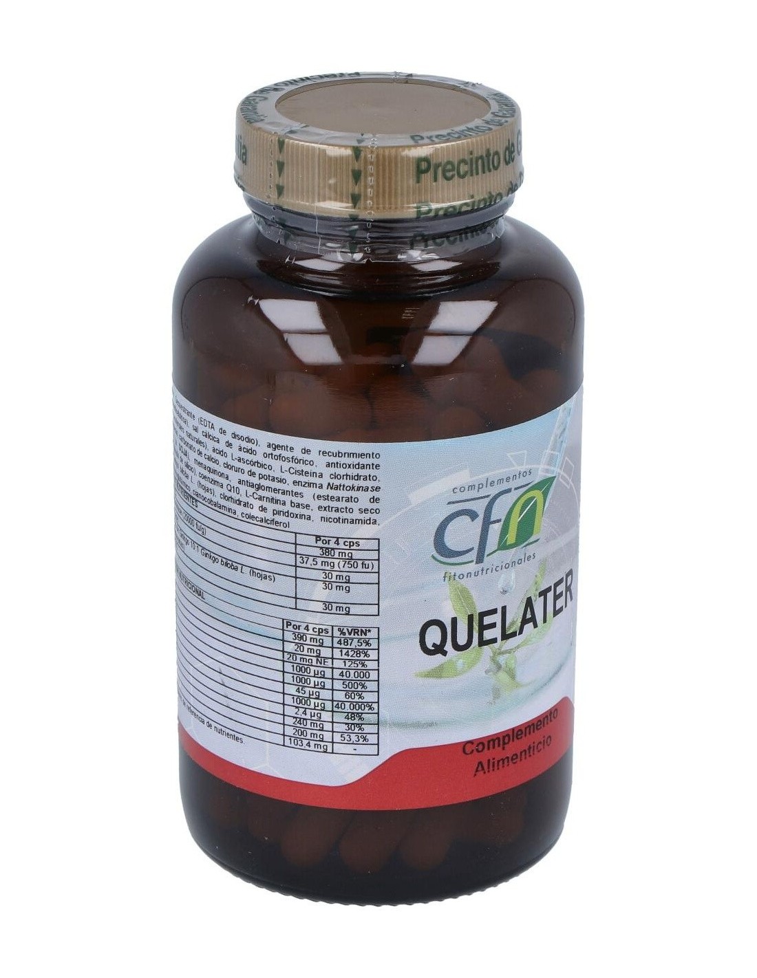 Vitamina C (ácido ascórbico) (400mg), Vitamina E (Mezcla de tocoferoles) (400UI), Niacina (20mg), Vitamina B6 (como Piridoxina HCI) (25mg), Ácido Fólico B9 (100mcg), Vitamina B12 (como cianocobalina) (100mcg), Calcio (carbonato) (300mg), Magnesio (oxido) (200mg), Potasio (cloruro) (200mg), L-Cisteina (como cisteína HCI) (380mg), COQ10 (como ubiquinona) (30mg), L-Carnitina (30mg), Ginkgo Biloba (estandarizado 50/1) (30mg), Nattokinasa (20.000 fu/g actividad fibrinolítica) (75mg), Vitamina D-3 (0,0024mg), EDTA (como disódico férrico) (600mg).