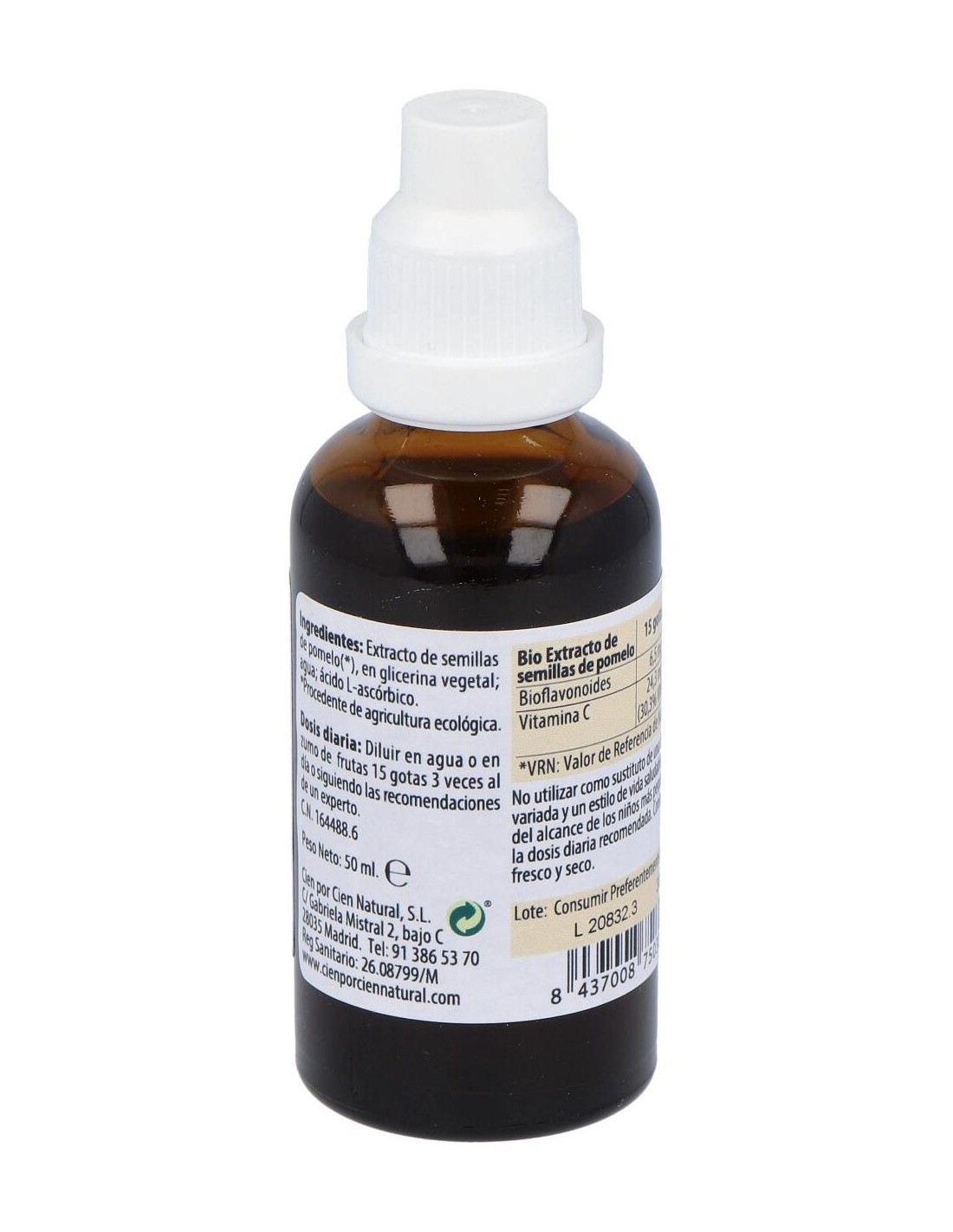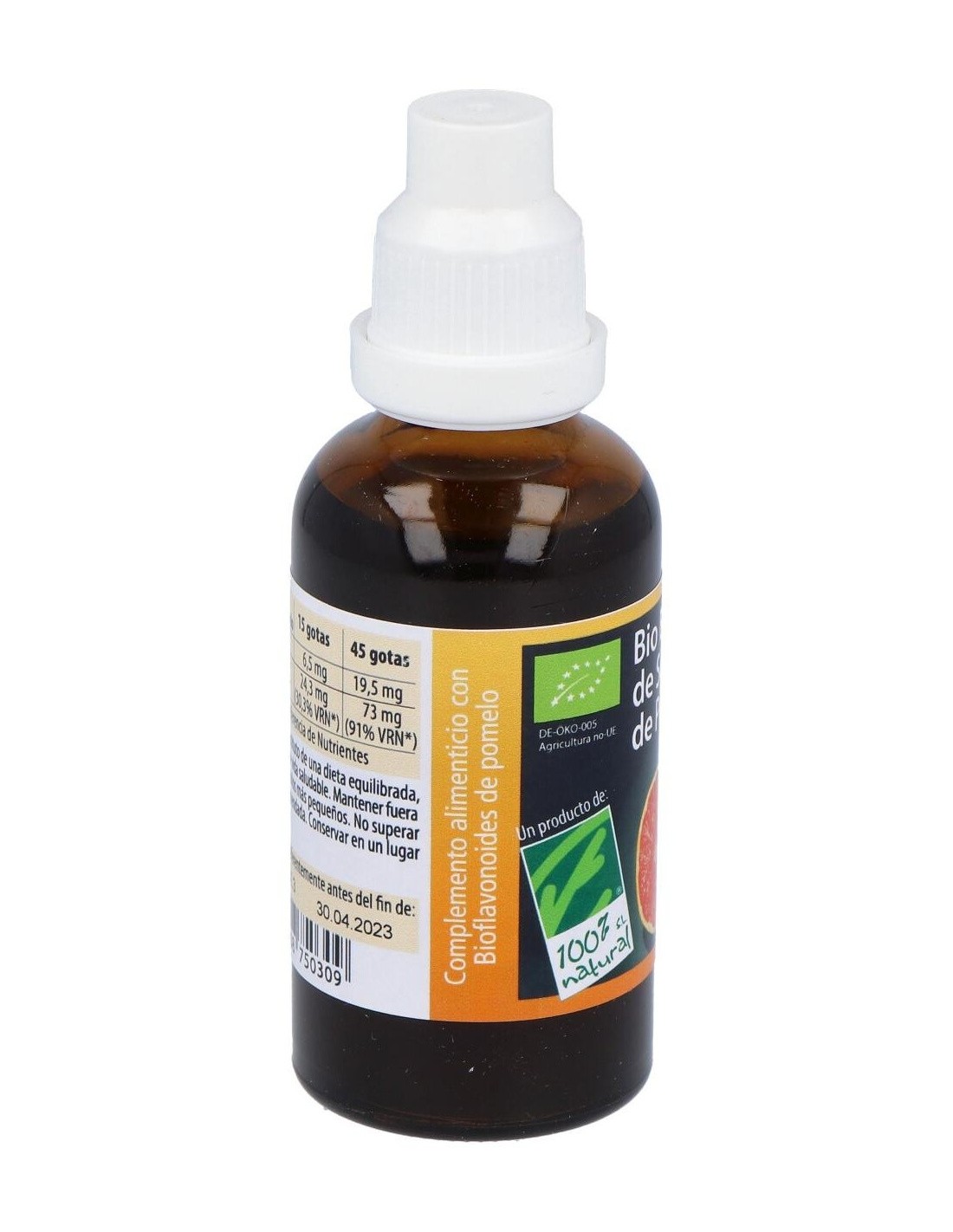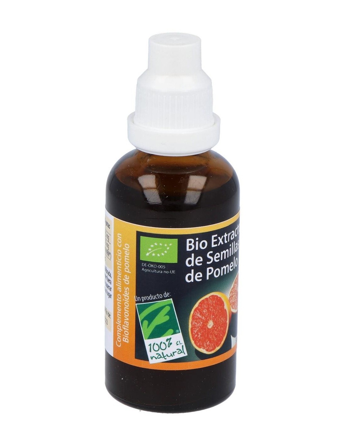 100% Natural Bio Extracto de Semillas de Pomelo Ecológico es un complemento alimenticio que se consigue de la extracción de los principios activos beneficiosos que contienen las semillas del pomelo, principalmente bioflavonoides y vitamina C.