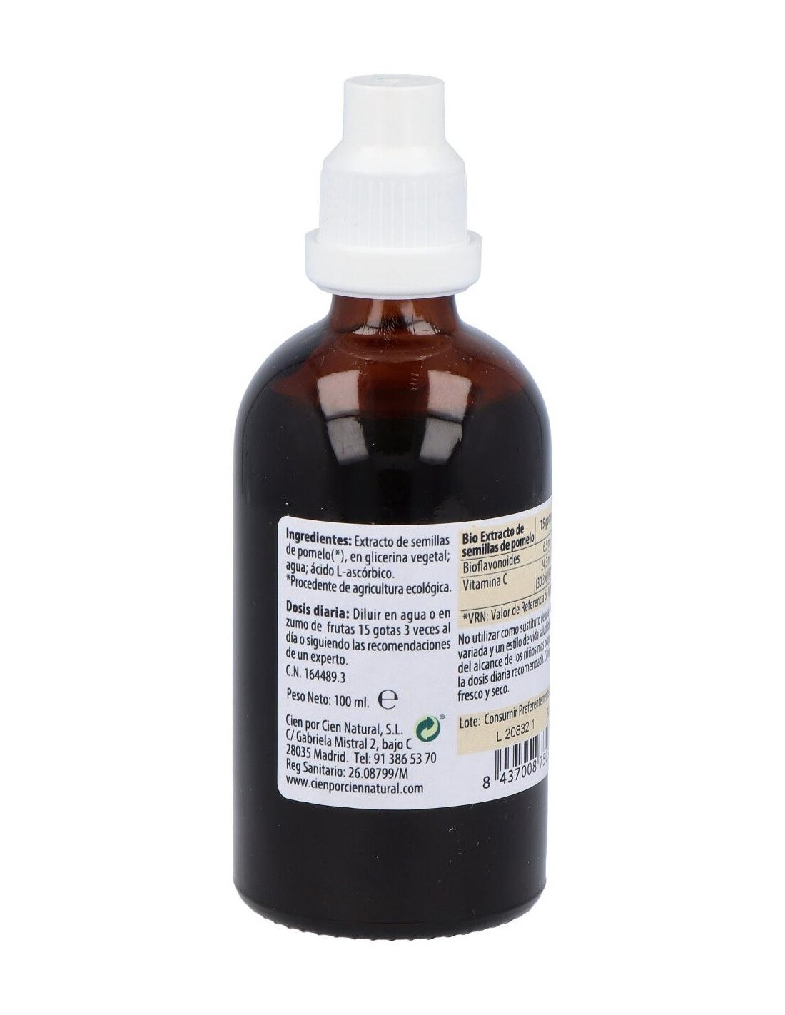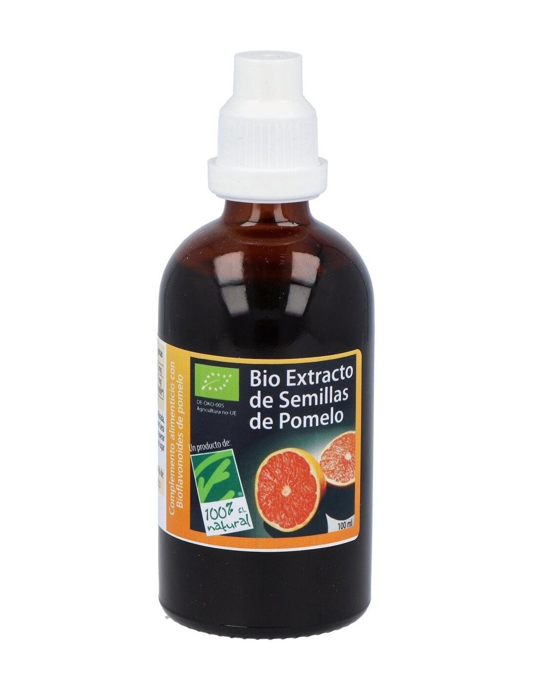 100% Natural Bio Extracto de Semillas de Pomelo Ecológico es un complemento alimenticio que se consigue de la extracción de los principios activos beneficiosos que contienen las semillas del pomelo, principalmente bioflavonoides y vitamina C.