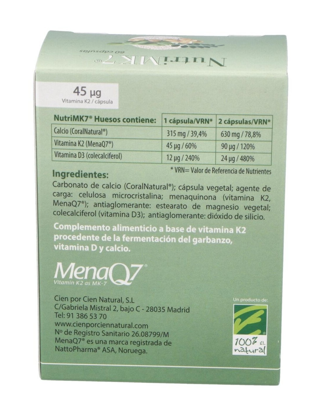 Vitamina K2 (MenaQ7®).........45 µg