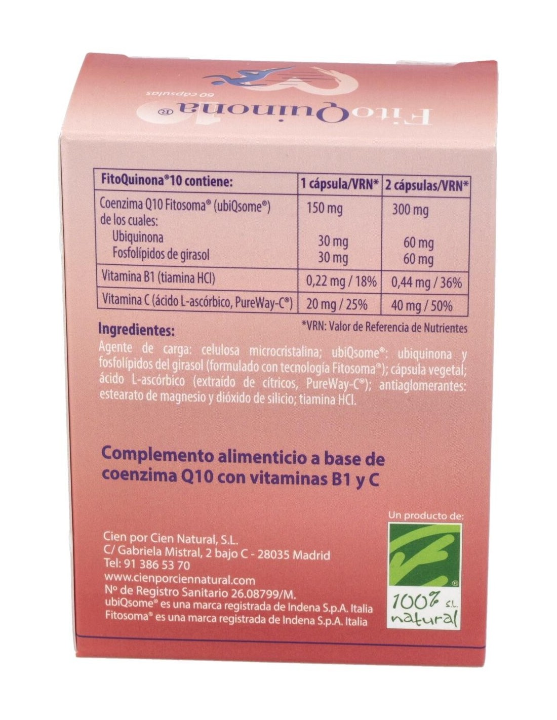 CIEN POR CIEN NATURALComplemento alimenticio a base de coenzima Q10 que ayuda a controlar el cansancio y la fatiga del día a día. Apto para deportistas ya que contribuye al funcionamiento normal del corazón.