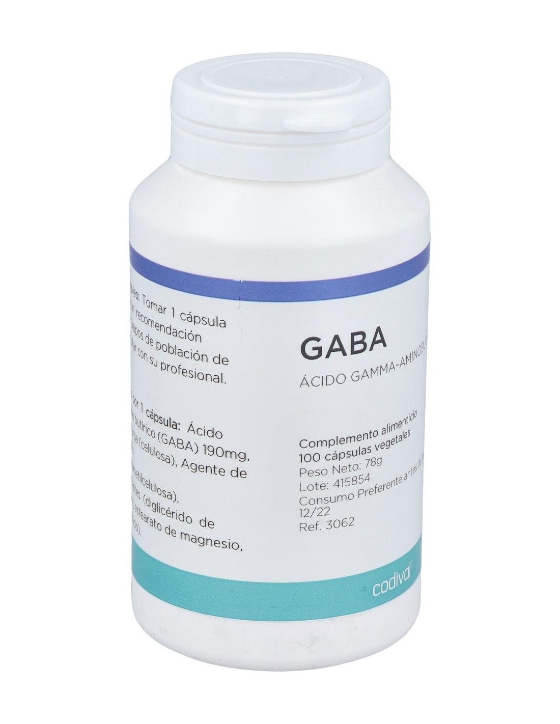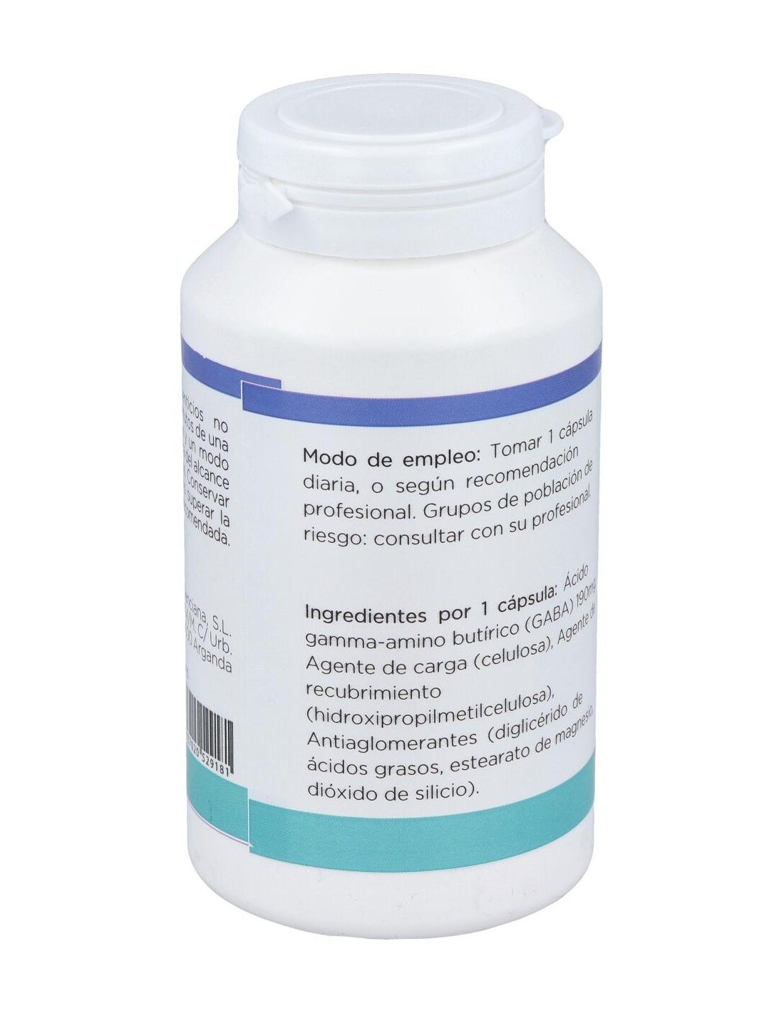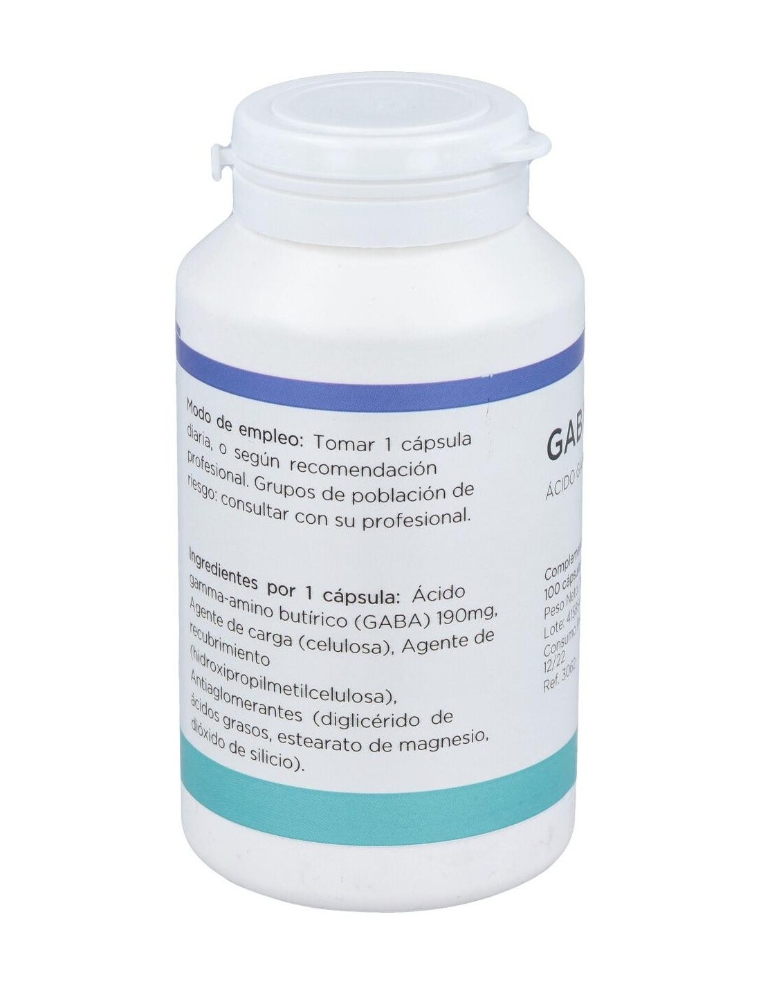 Por 1 cápsula: Ácido gamma-amino butírico (GABA) 190mg, Agente de carga (celulosa), Agente de recubrimiento (hidroxipropilmetilcelulosa), Antiaglomerantes (diglicérido de ácidos grasos, estearato de magnesio, dióxido de silicio).