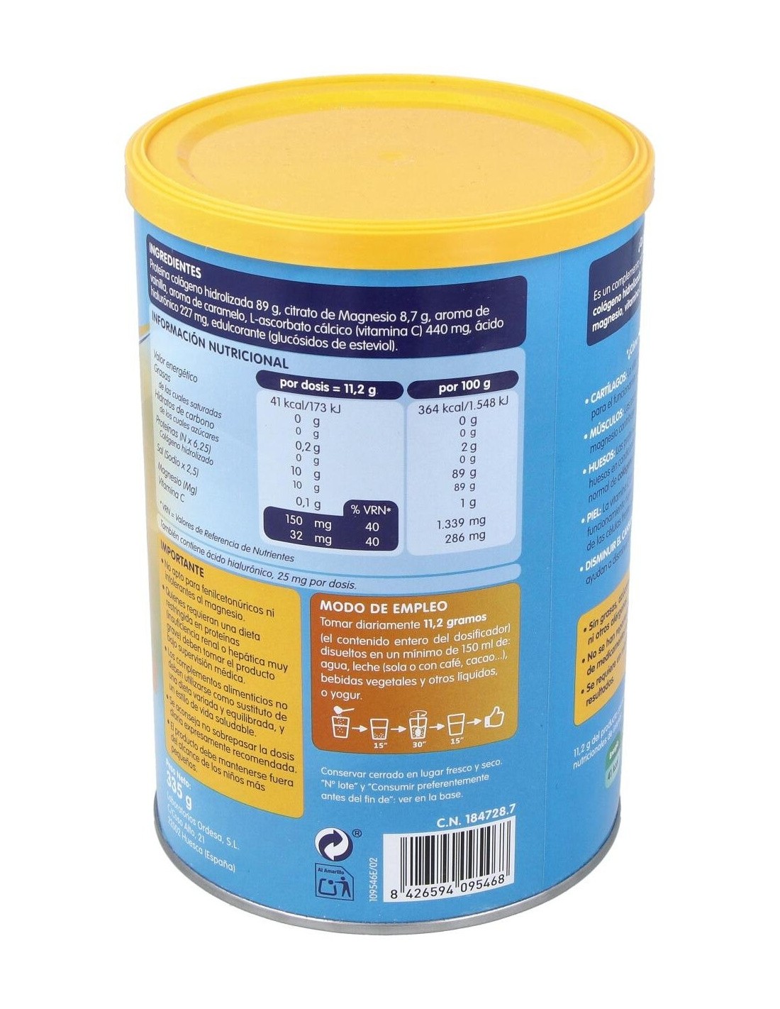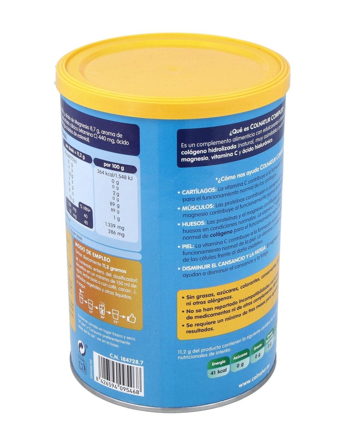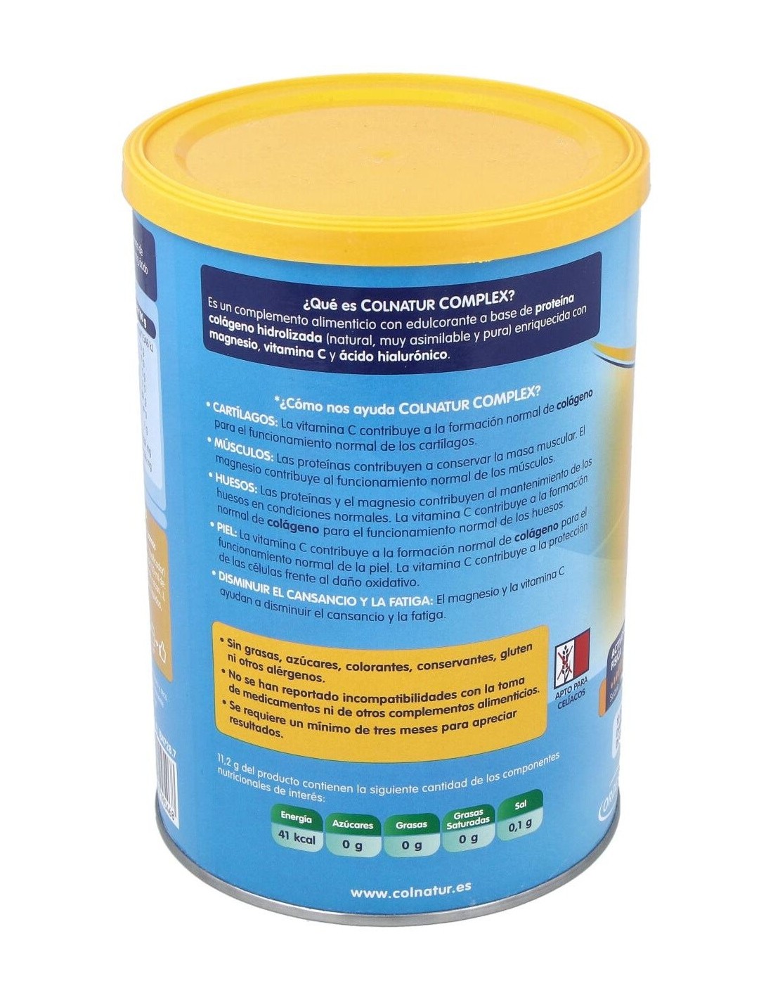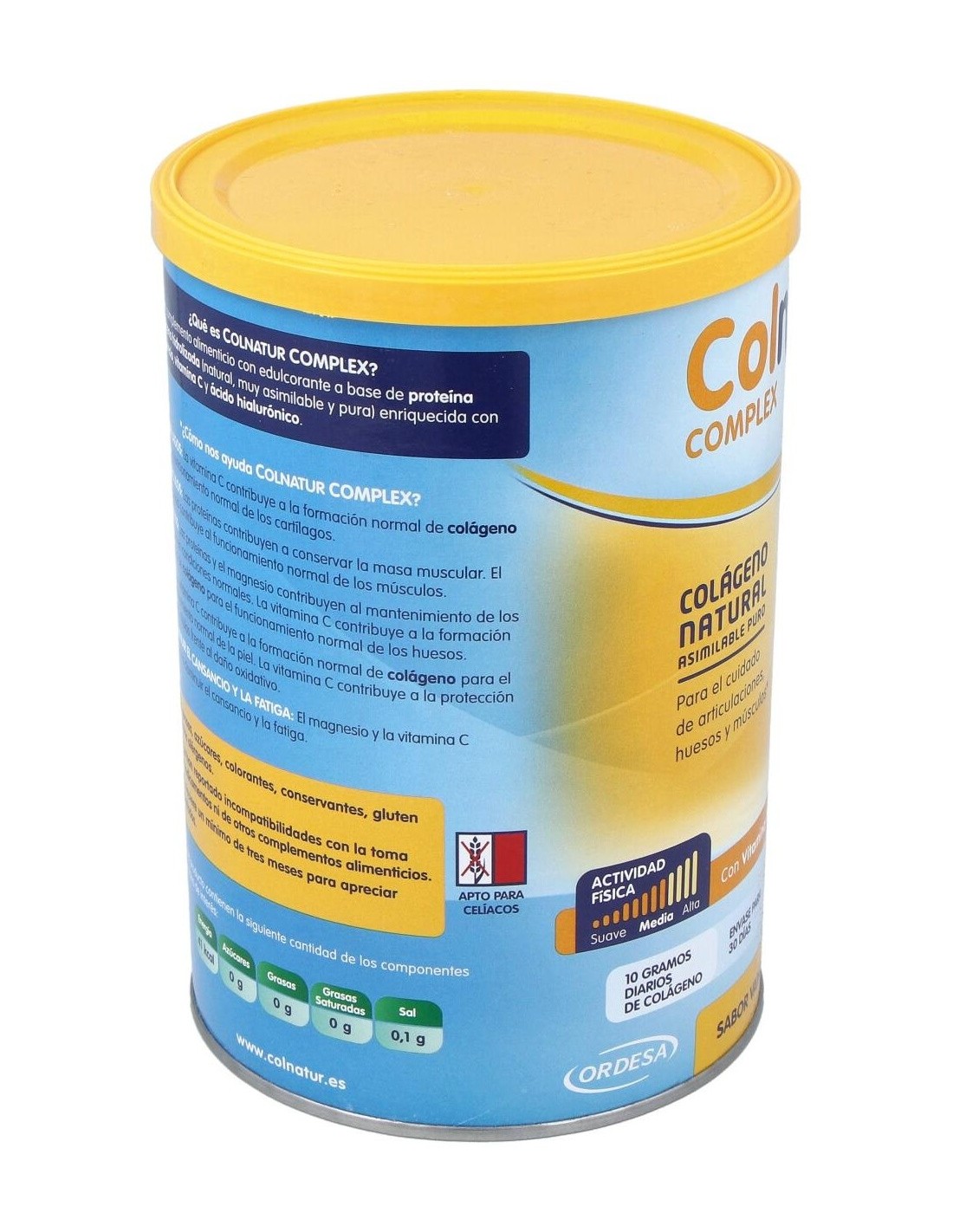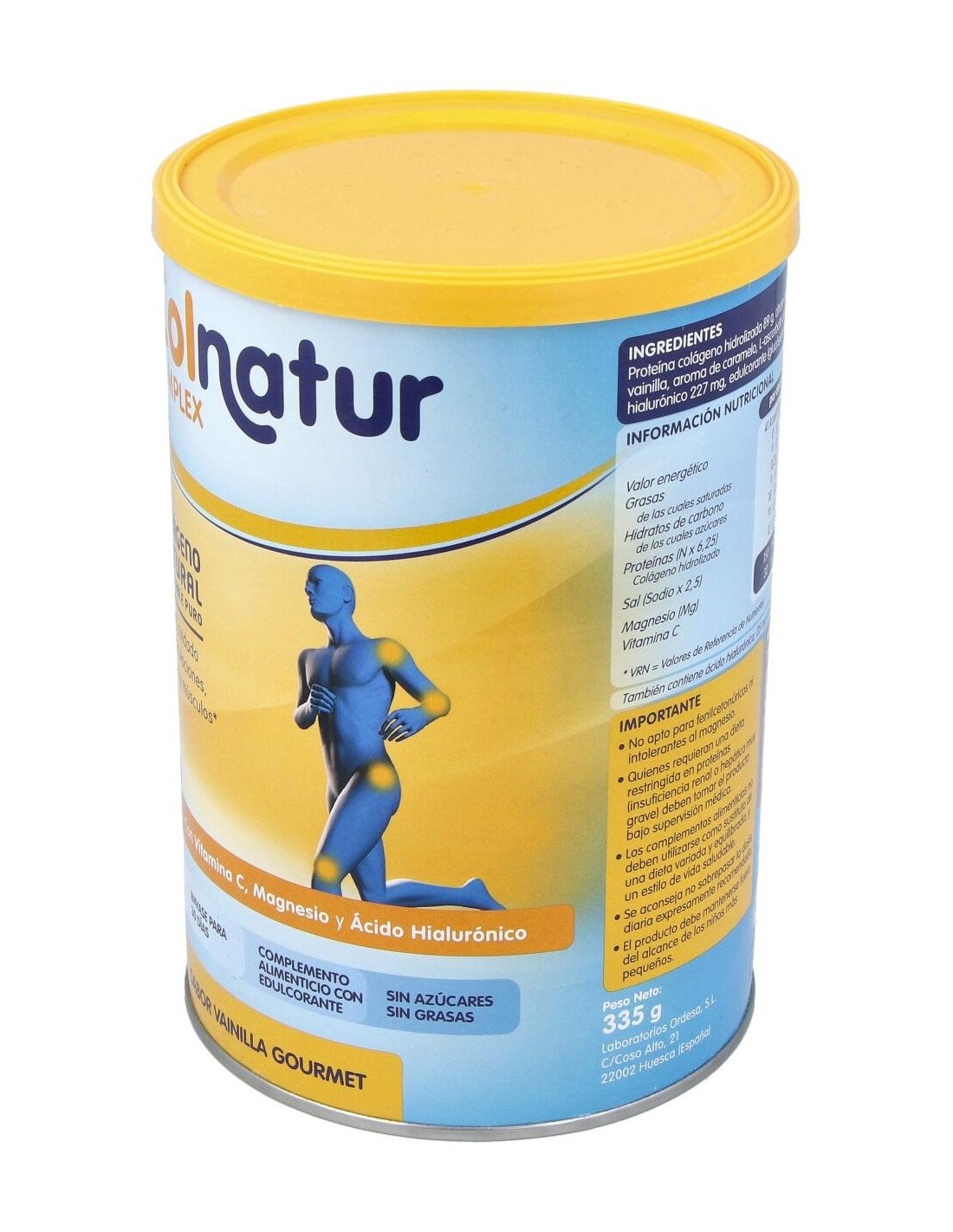 Complemento alimenticio en polvo a base de proteína colágeno hidrolizada (natural, muy asimilable y pura) enriquecida con magnesio, vitamina C y ácido hialurónico. Indicado para huesos, músculos, articulaciones y piel.