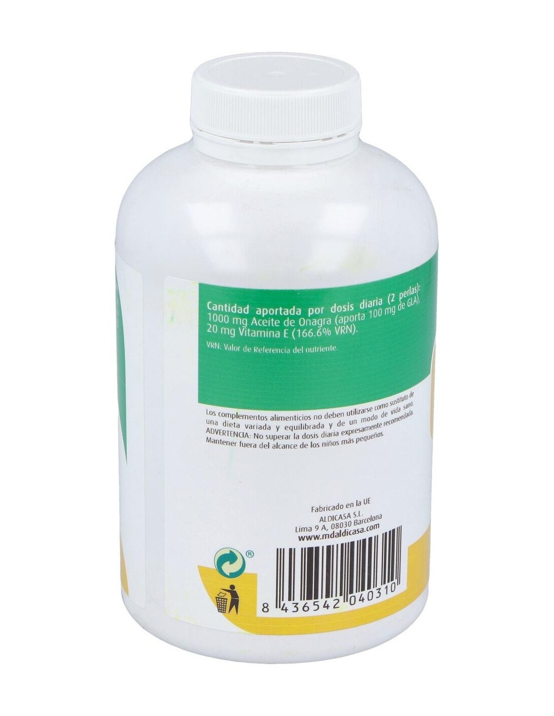 Cápsulas diseñadas a base de aceite de onagra obtenido del prensado en frío de las semillas, están enriquecidas con vitamina E que proporciona una acción antioxidante. Además de fortalecer el sistema inmunitario contribuye a mantener la salud de uñas, cabello y piel, especialmente interesante para mujeres de cualquier edad.