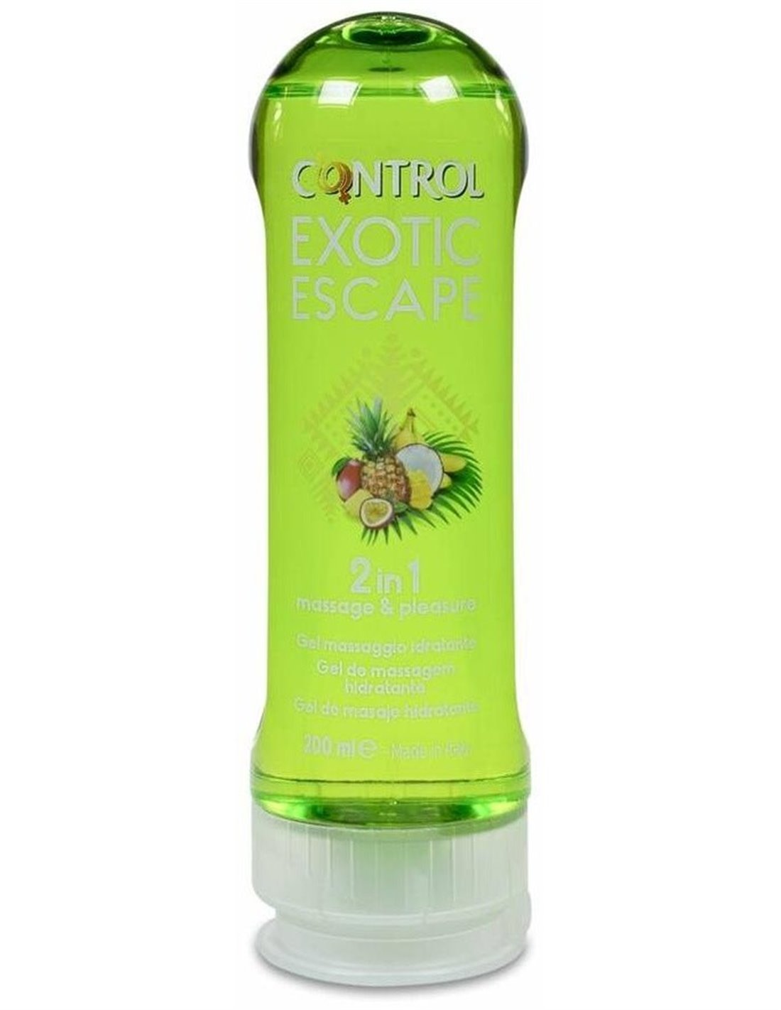 CONTROLGel de masaje 2 en 1 con un aroma exótico como las frutas de Sudamérica. Tiene una acción hidratante y estimulante que contribuye al bienestar, la tranquilidad y el equilibrio.