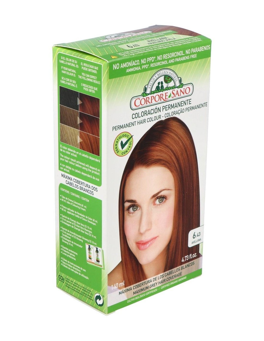 Tinte Avellana (6.43) que gracias a esta nueva línea se consigue máxima cobertura, color intenso y radiante, larga duración, protección del color y máximo cuidado. La nueva línea de tintes permanentes son la auténtica revolución. Su innovadora fórmula proporciona la máxima coloración y protección al cabello, aportándole brillo y suavidad y facilitando el equilibrio natural del cuero cabelludo. Su fórmula está enriquecida con ingredientes naturales que facilitan una protección natural del cabello y del cuero cabelludo.