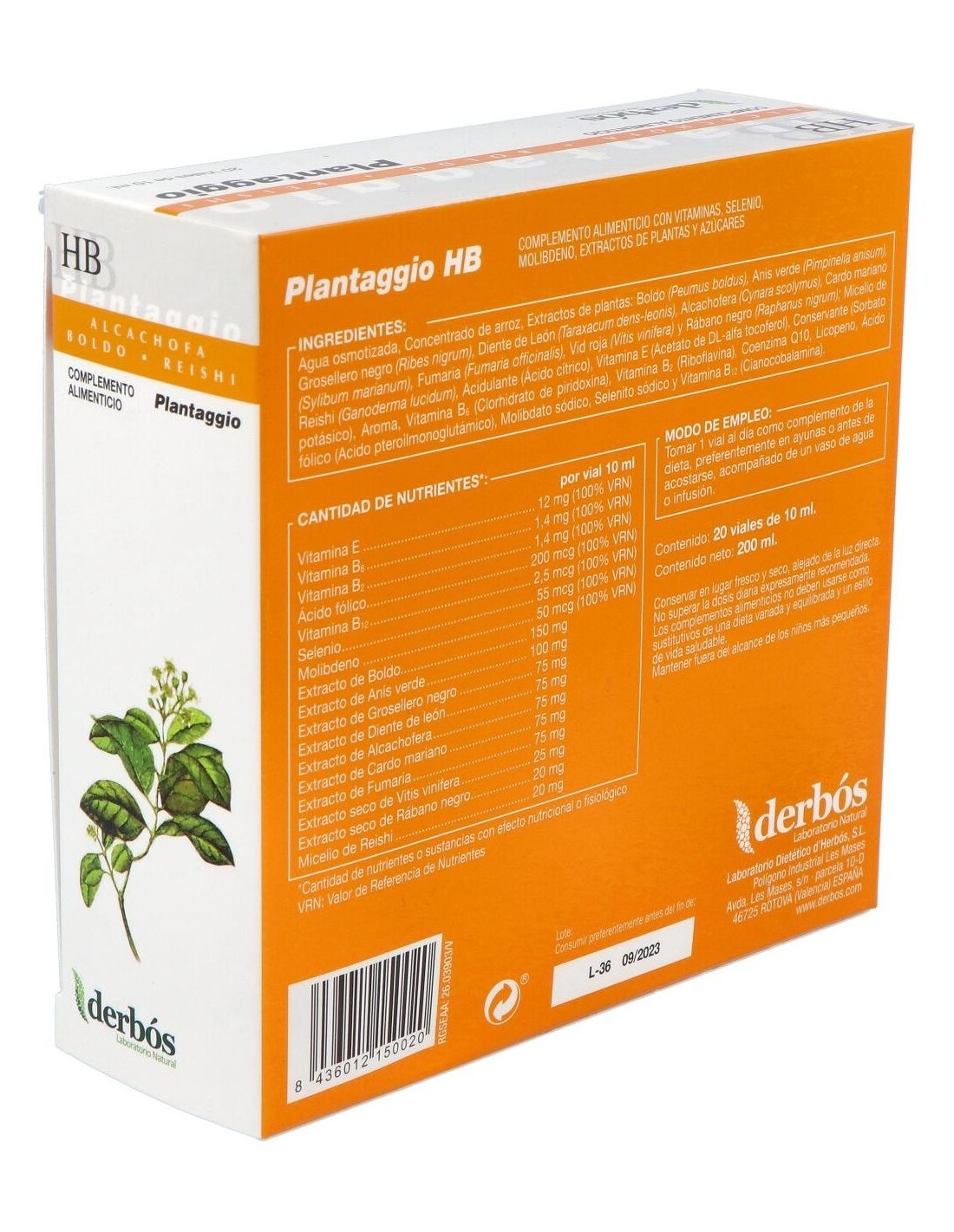 Derbos plantaggio hb es un complemento alimenticio especialmente formulado para favorecer el funcionamiento hepático. Preparado a base de plantas y nutrientes específicos favorece la función hepatico-biliar y ofrece al hígado una protección.
