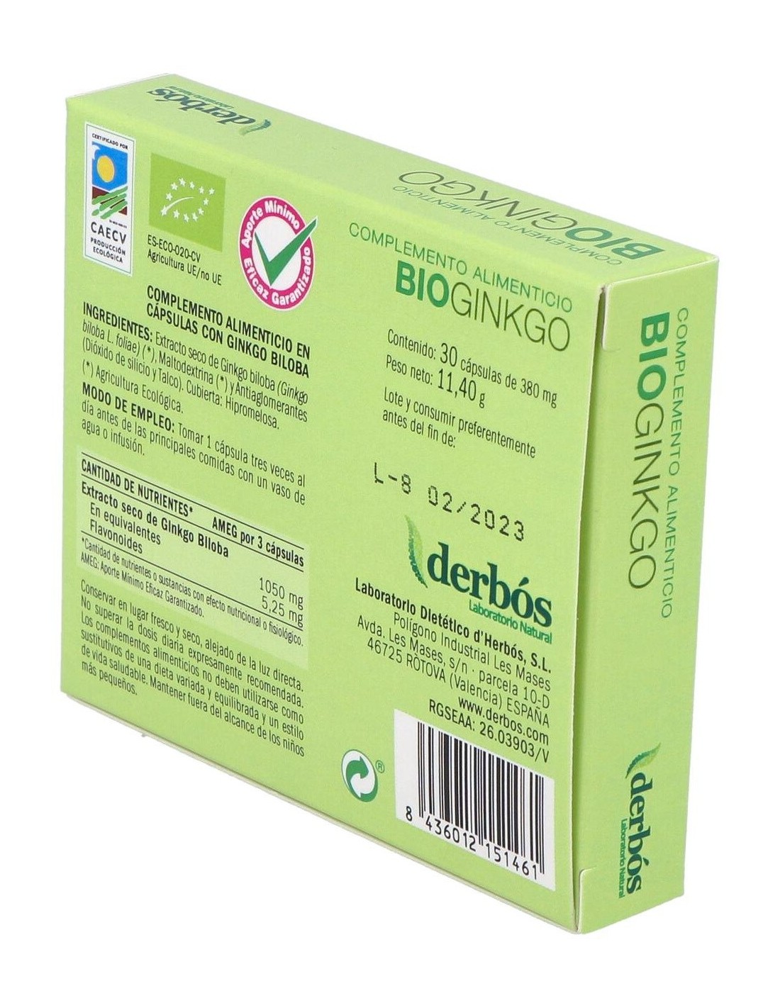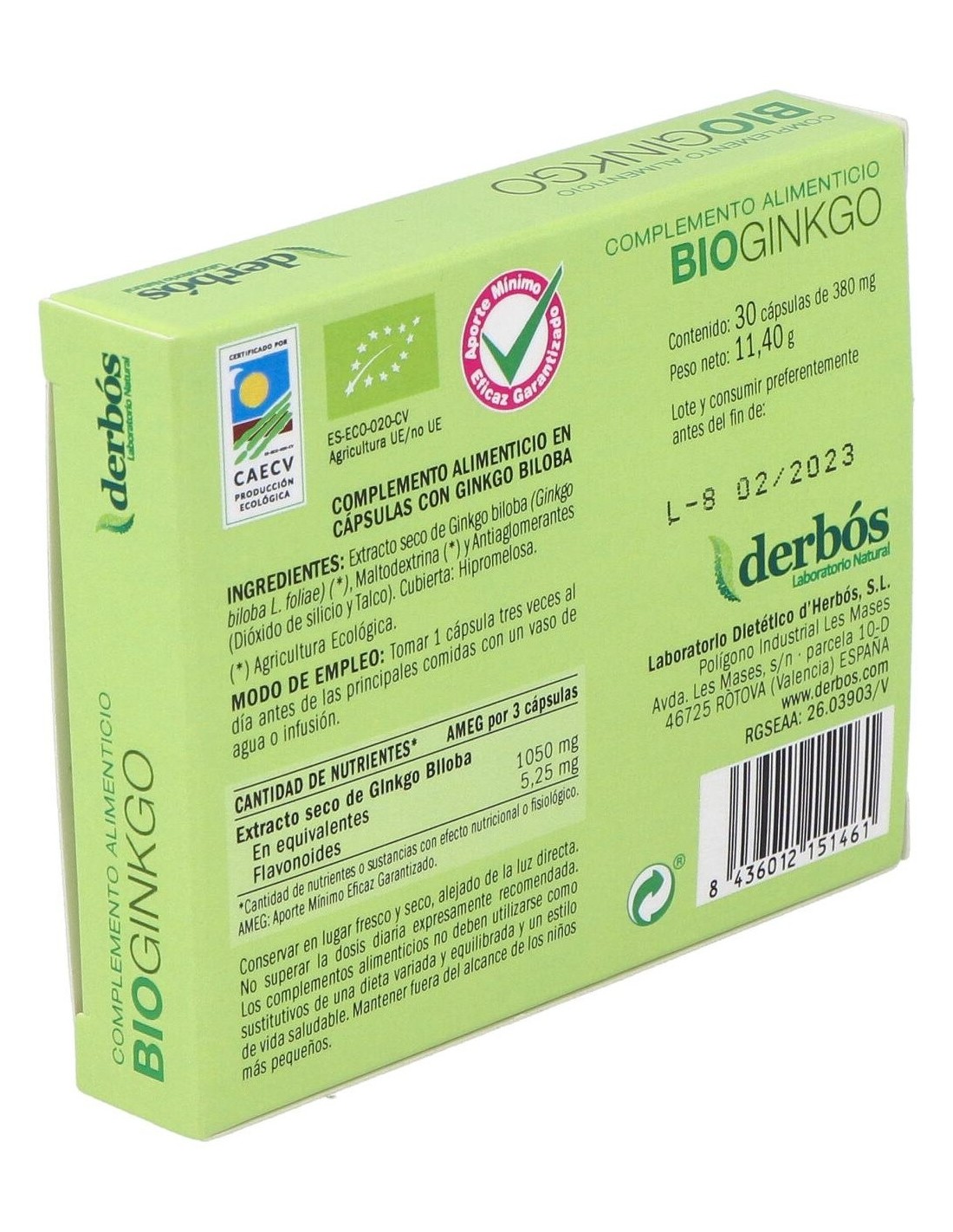 DERBOSDerbós Bio ginkgo biloba es un complemento nutricional, formulado a base de una rica selección de ingredientes biológicos, indicado para mantener una correcta circulación, especialmente en extremidades inferiores. También es un ayuda a mejorar la actividad cerebral y aumentar la memoria a corto plazo.