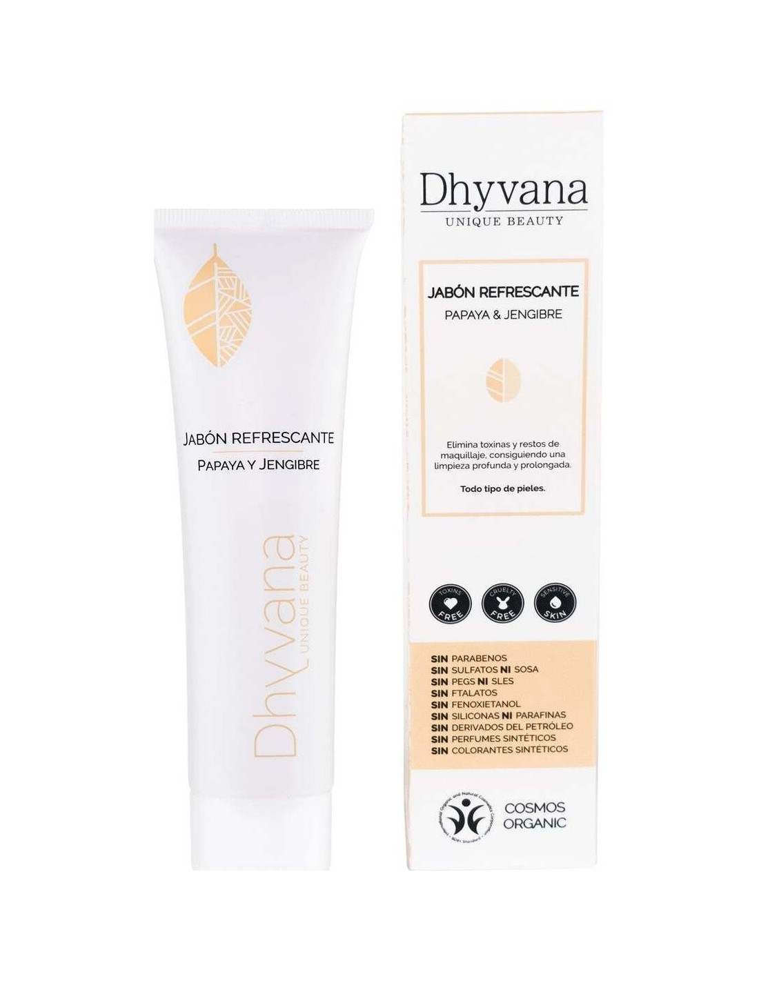 El Jabón Refrescante Unique Beauty® Papaya y Jengibre 100ml ECO de Dhyvana combina suaves agentes limpiadores con extractos botánicos de papaya y jengibre. Su espuma consigue un efecto purificante y refrescante en tu piel y la deja perfectamente preparada para absorber tu tratamiento facial diario. Utilízalo cada día para mantener tu piel suave y limpia y prevenir poros congestionados, puntos negros y espinillas.