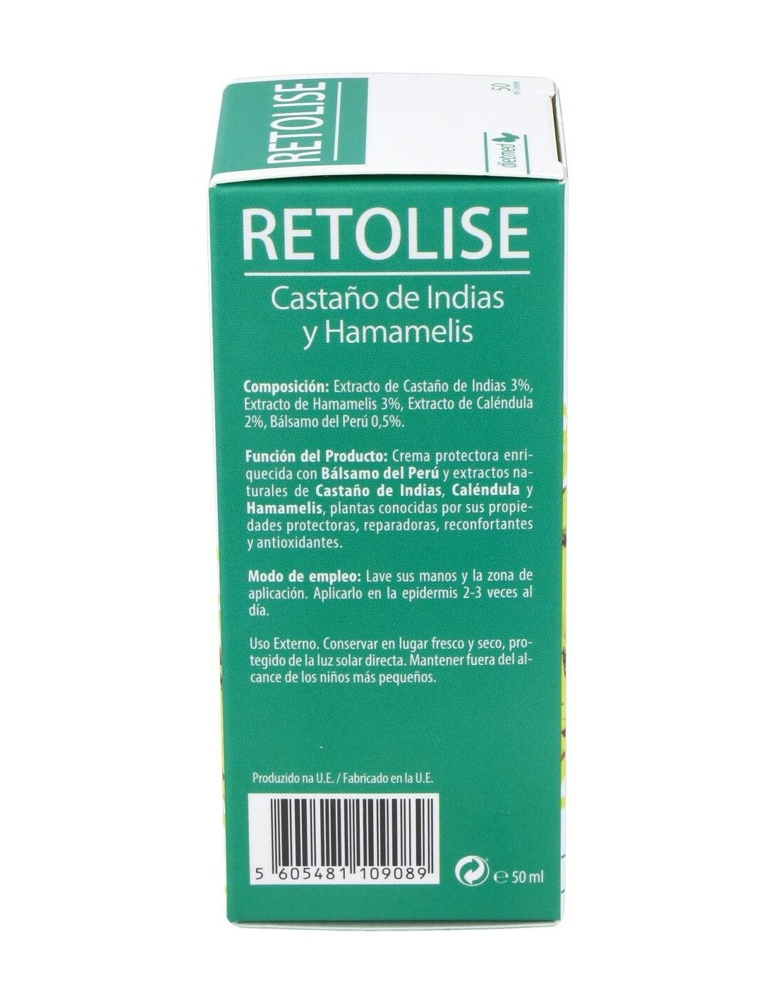 Extracto de Castaño de Indias 3%, Extracto de Hamamelis 3%, Extracto de Caléndula 2%, Bálsamo del Perú 0,5%