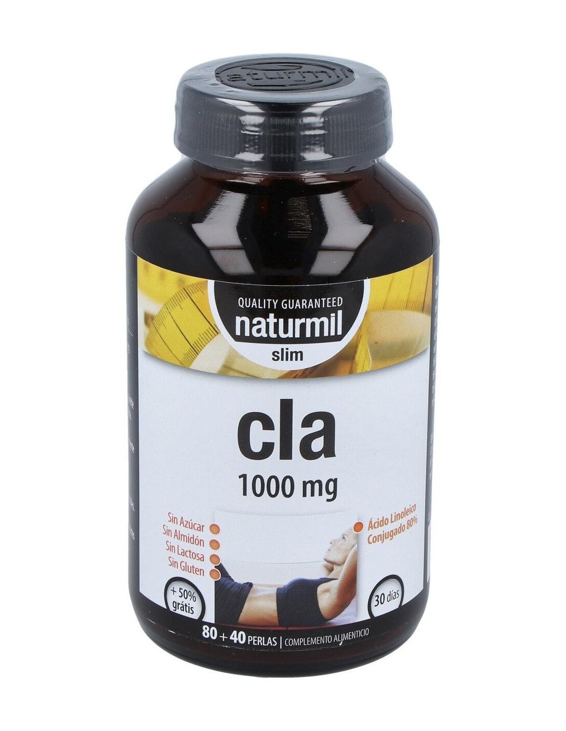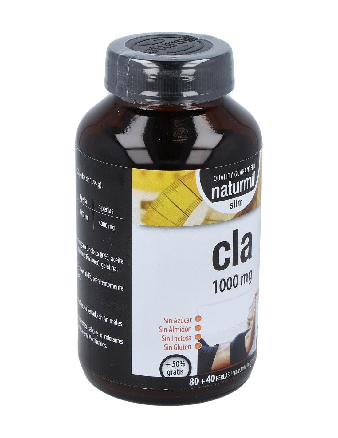 Naturmil Cla Strong 1000mg 80 + 40 Perlas es un complemento alimenticio basado en ingredientes de uso común para ayudar a reducir la grasa, aumentar la producción de energía y mejorar la definición muscular. Ayuda a aumentar la masa muscular, quemar grasa, producir energía y acelerar el metabolismo. Con efecto adelgazante, al estimular la lipolisis (quema de grasas), dando lugar a una disminución de la cantidad de tejido adiposo. Promueve el incremento de masa muscular, siendo por ello útil para deportistas. Ayuda en dietas de adelgazamiento. En caso de embarazo o lactancia usar sólo después del consejo de un técnico de salud.