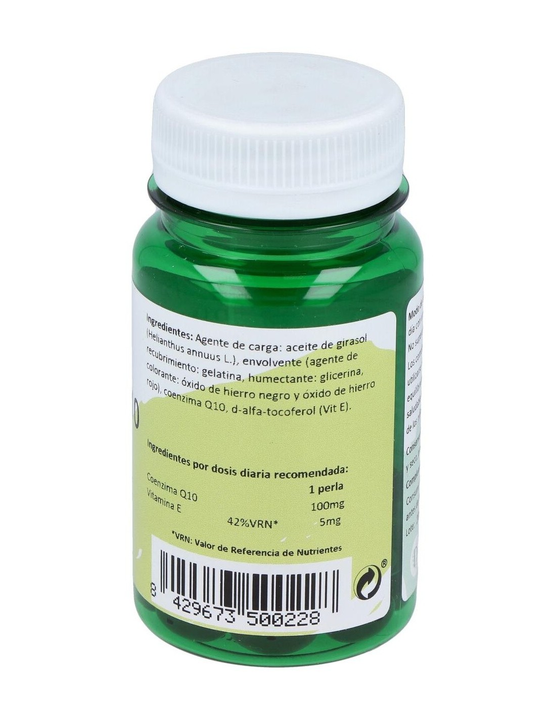 AGENTE DE CARGA: ACEITE DE GIRASOL (HELIANTHUS ANNUUS L.), ENVOLVENTE (AGENTE DE RECUBRIMIENTO: GELATINA, HUMECTANTE: GLICERINA, COLORANTE: ÓXIDO DE HIERRO NEGRO Y ÓXIDO DE HIERRO ROJO), COENZIMA Q10, D-ALFA-TOCOFEROL (VIT E).