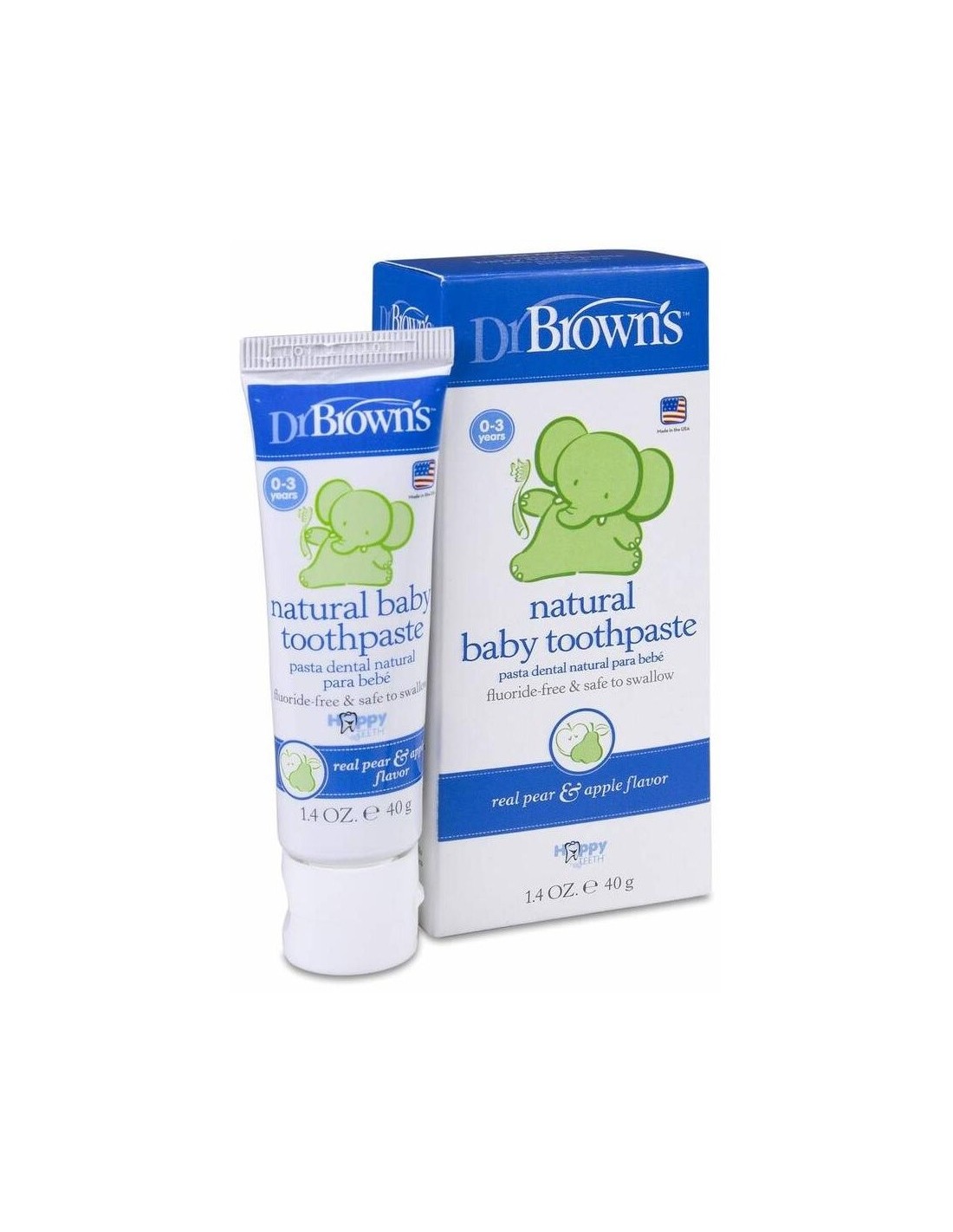 DR. BROWN´SSin fluoruro: perfecta para los padres que prefieren una opción sin fluoruro para limpiar los dientes y encías de sus pequeños. Segura si se traga: elaborada con ingredientes totalmente naturales y sin sabores o colores artificiales ni conservantes, esta pasta dental es segura si se ingiere.