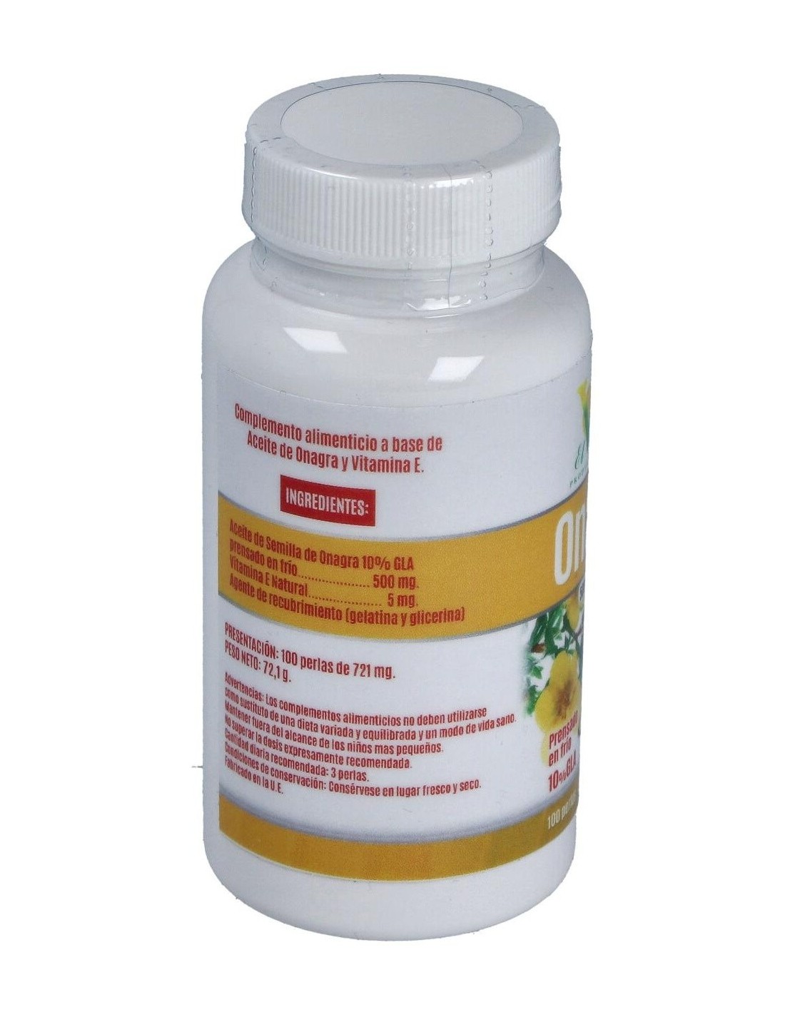 Complemento alimenticio en formato de perla, que gracias a su contenido en aceite de onagra contribuye a aliviar los síntomas de menstruaciones irregulares y dolorosas, menopausia, artritis y reuma, fibrosis quística y alergias. Contribuye a mejorar el aspecto en pieles resecas y escamosas.