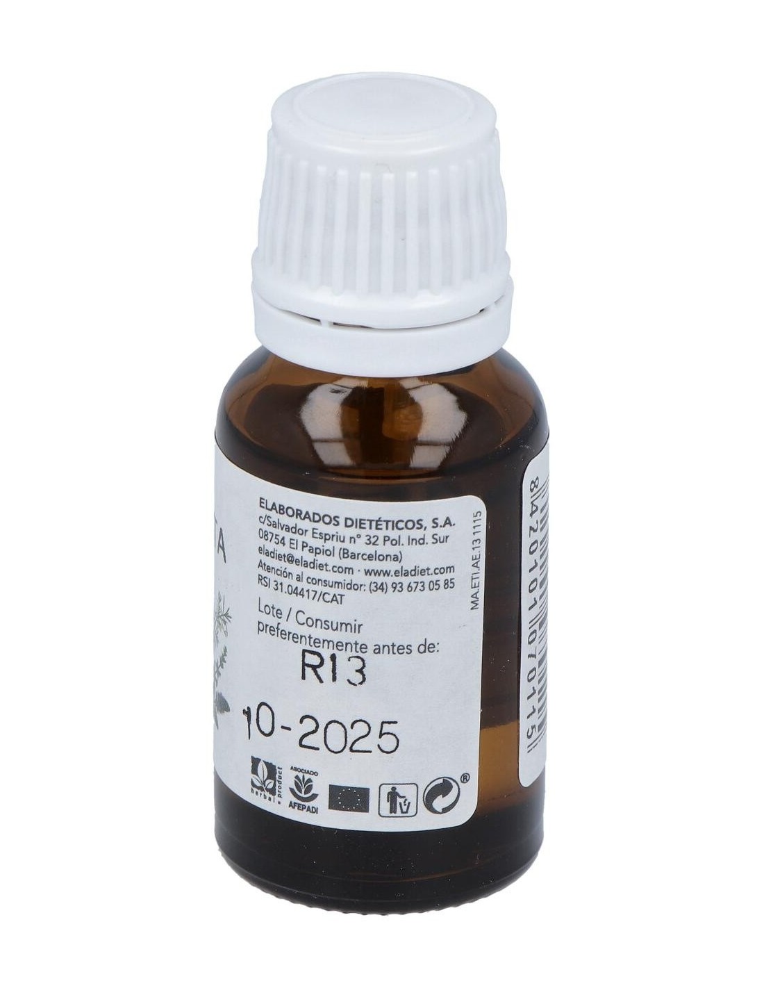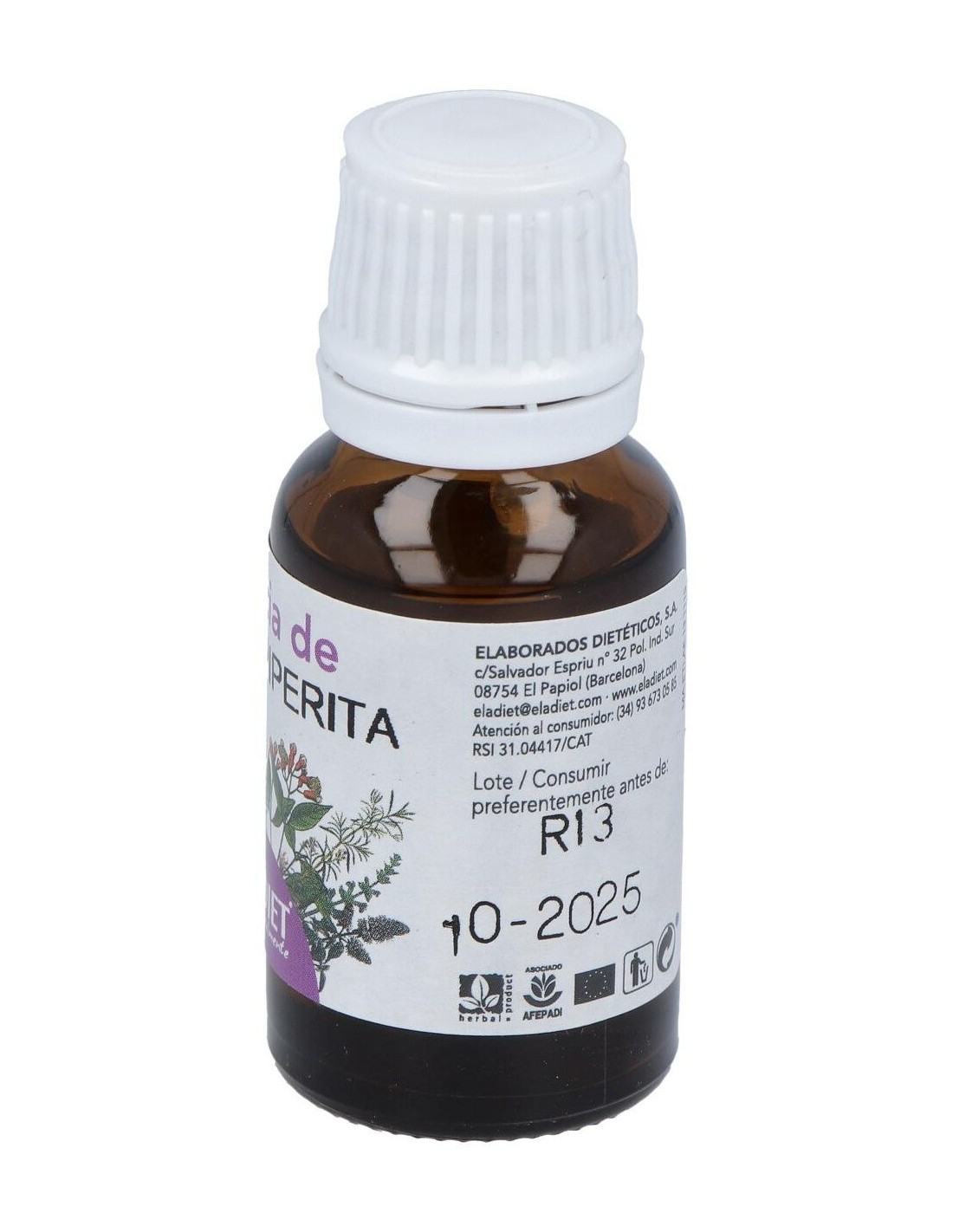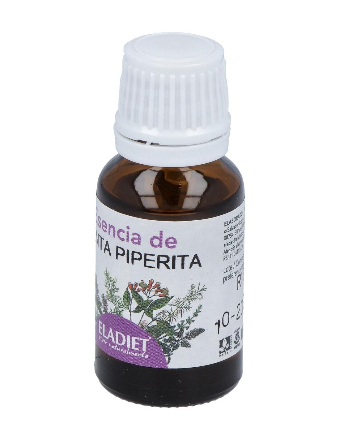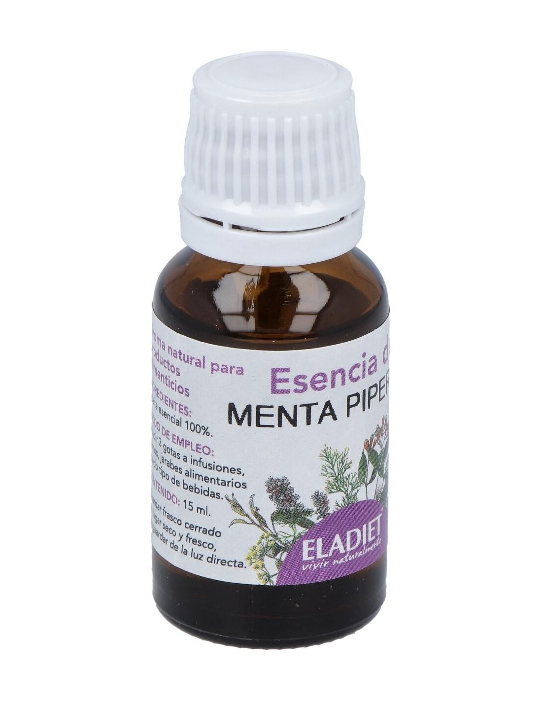 ELADIETAceite esencial de Menta Piperita 100% puro, extraído por destilación con agua de las hojas o planta entera. Para ayudar a realizar la digestión, la e