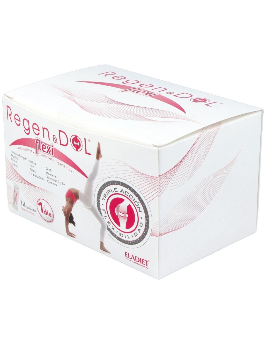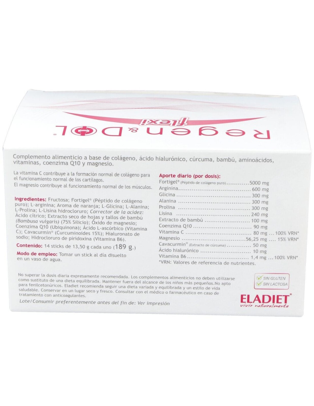 ELADIETComplemento alimenticio en formato sticks. Elaboradas a base de colágeno, ácido hialurónico, cúrcuma, bambú, aminoácidos, vitamina C, coenzima Q10 y magnesio.