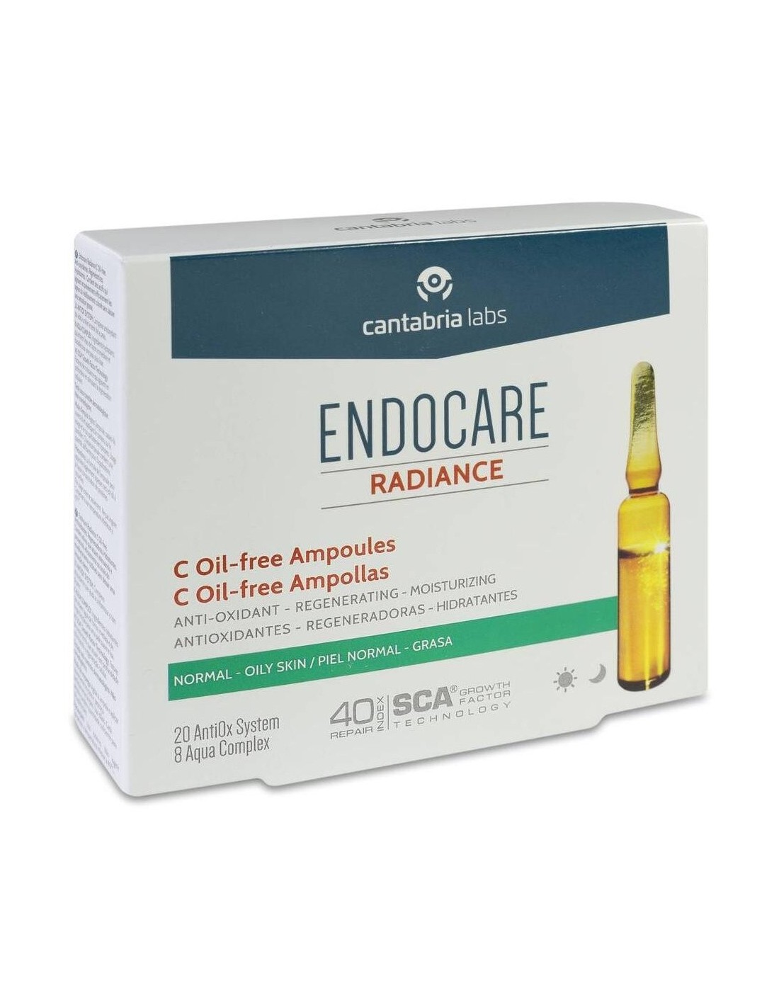 Endocare Radiance C Oil Free 10amp son unas ampollas elaboradas con complejos antioxidantes que favorecen la iluminación del rostro como vitamina E, ácido cítrico y vitamina C.