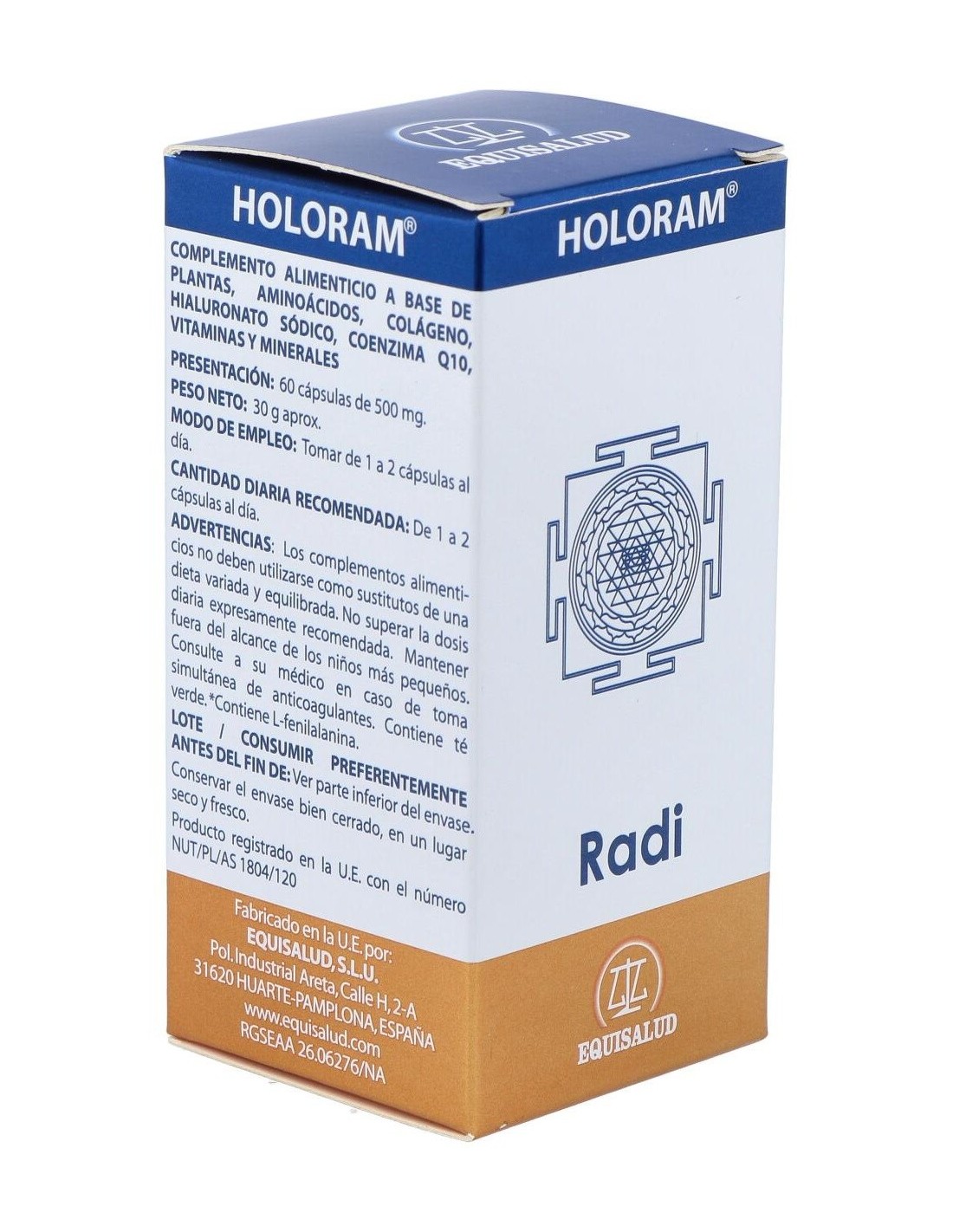 Holoram Radi 60Cap. de Equisalud es un suplemento diseñado para personas que buscan apoyar su bienestar diario mediante una fórmula equilibrada. Está pensado para quienes desean complementar su rutina con ingredientes seleccionados que contribuyen al mantenimiento general del organismo.