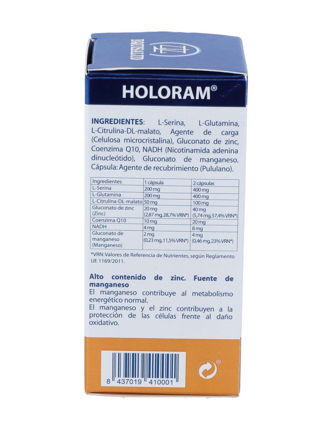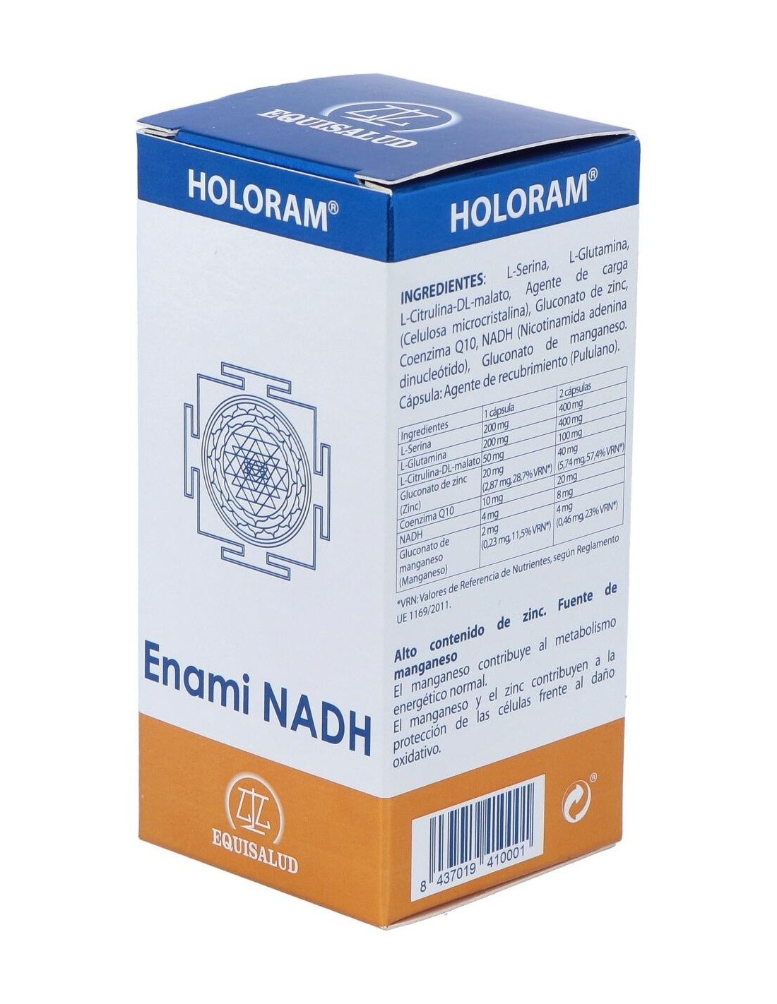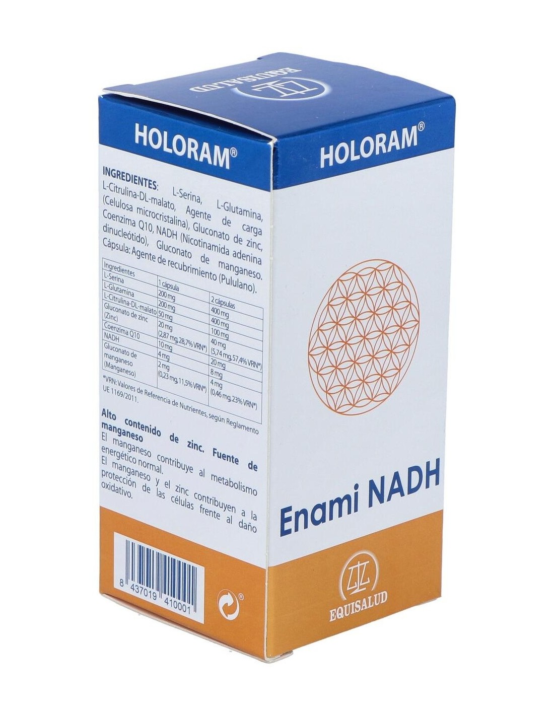 Coenzima Q10 Gluconato de Manganeso Gluconato de Zinc L-serina NADH (Nicotamida adenina dinucleótido). Envoltura: polisacárido de origen vegetal (pululano).