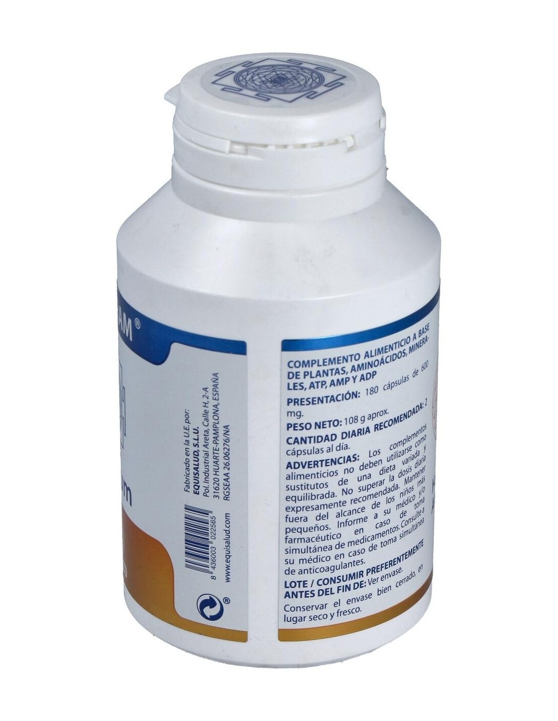 ATP, ADP, AMP, Hipérico, Espino blanco, Maca, Ginseng, Ginkgo, L-Tirosina, L-Arginina, L-Triptófano, L-Serina, Gluconato de Manganeso, Fosfato Tricálcico. Envoltura de polisacárido de origen vegetal (pululano).