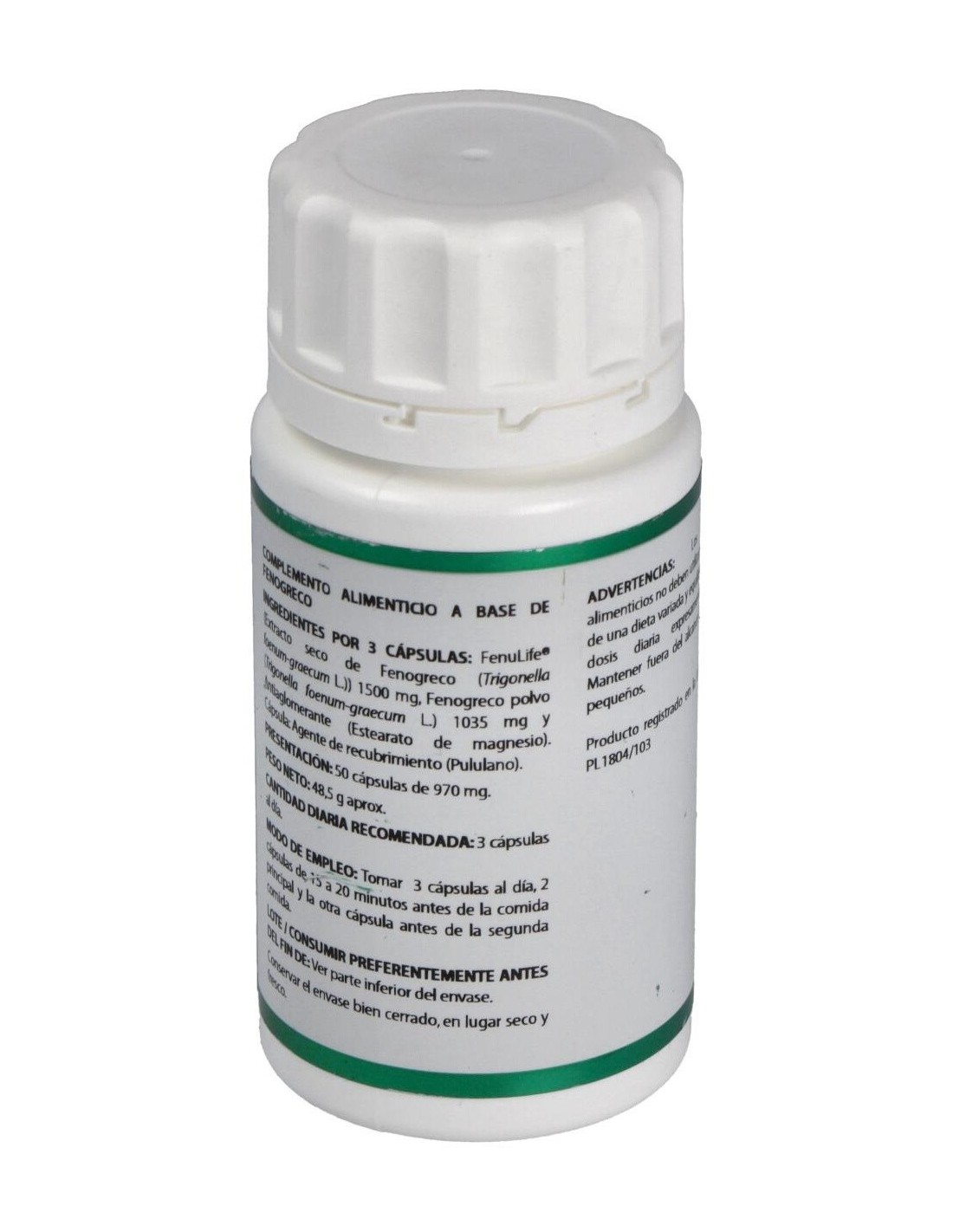 FenuLife® (fenogreco extracto seco (Trigonella foenum-graecum L.)), 500 mg: fenogreco polvo (Trigonella foenum-graecum L.), 345 mg. Envoltura: polisacárido de origen vegetal (pululano).