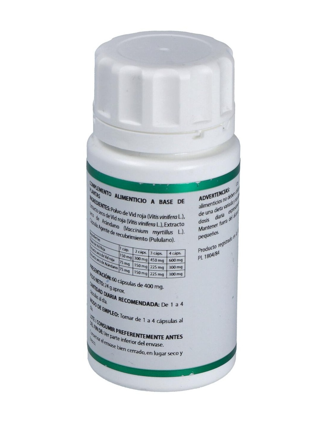 Vid roja, Arándano. Envoltura de polisacárido de origen vegetal (pululano).