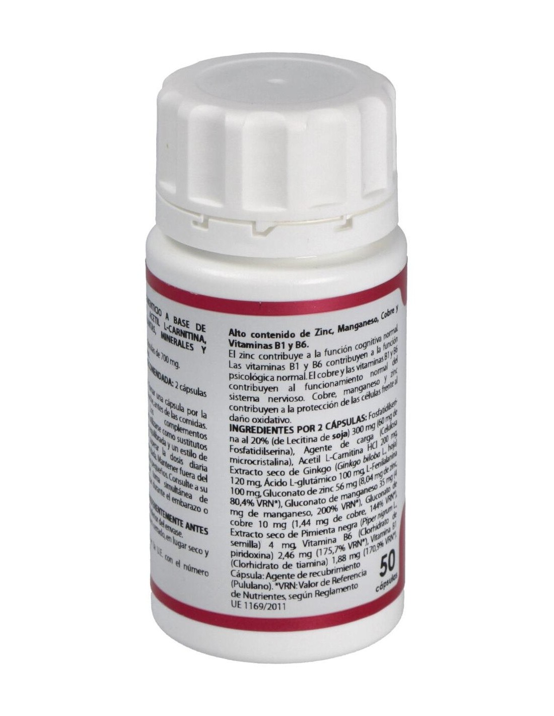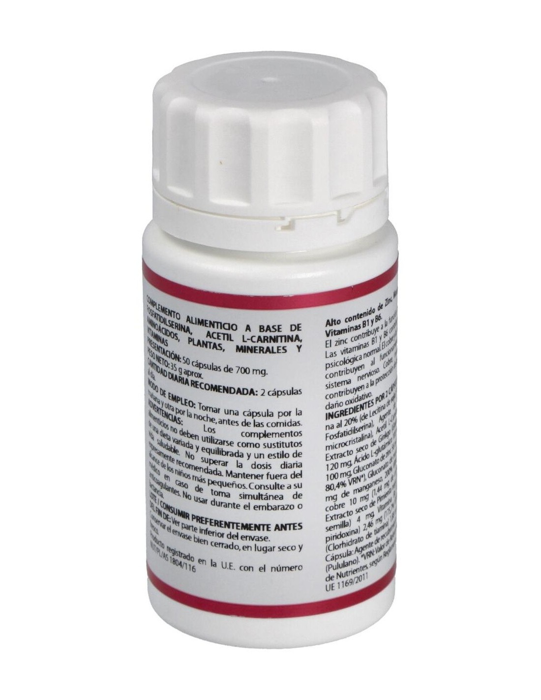 OSFATIDIL L-SERINA. ACETIL L-CARNITINA. GINKGO. ÁCIDO L-GLUTÁMICO. L-FENILALANINA. GLUCONATO DE ZN. GLUCONATO DE MN. GLUCONATO DE CU. PIMIENTA NEGRA. VIT. B6. VIT B1.
