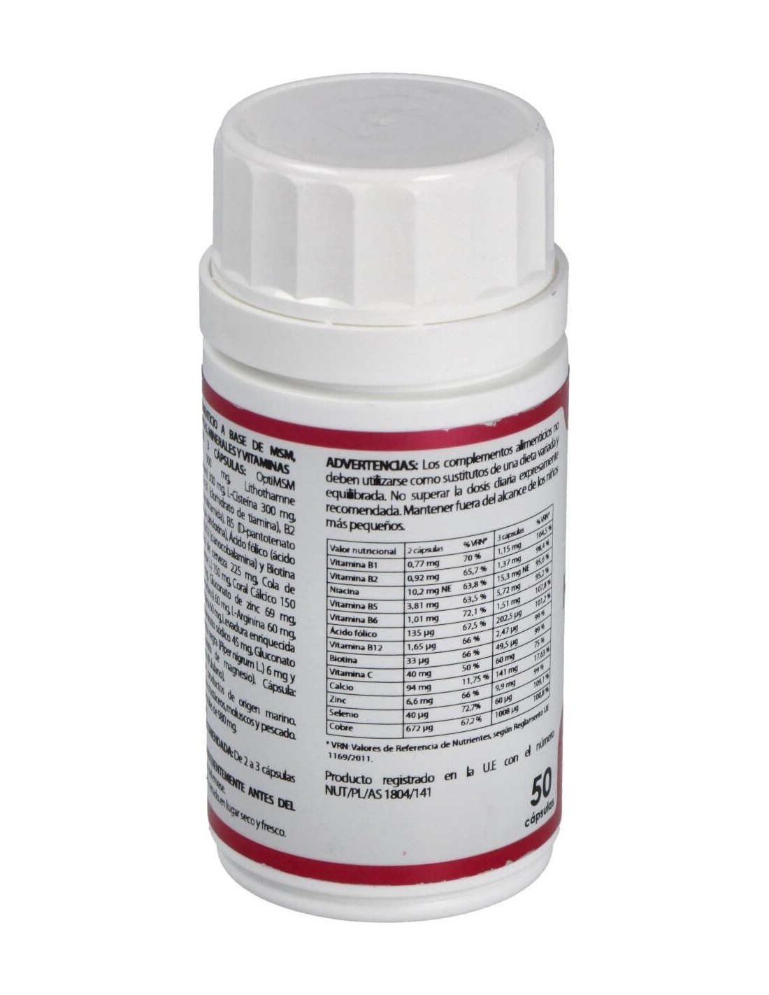 Complemento alimenticio a base de MSM, plantas, aminoácidos, vitaminas y minerales que ayuda a conseguir una nutrición muy saludable de los tejidos que conforman tanto la piel, como el cabello y las uñas. Apto para vegetarianos, diabéticos y pacientes con dietas y restrictivas.