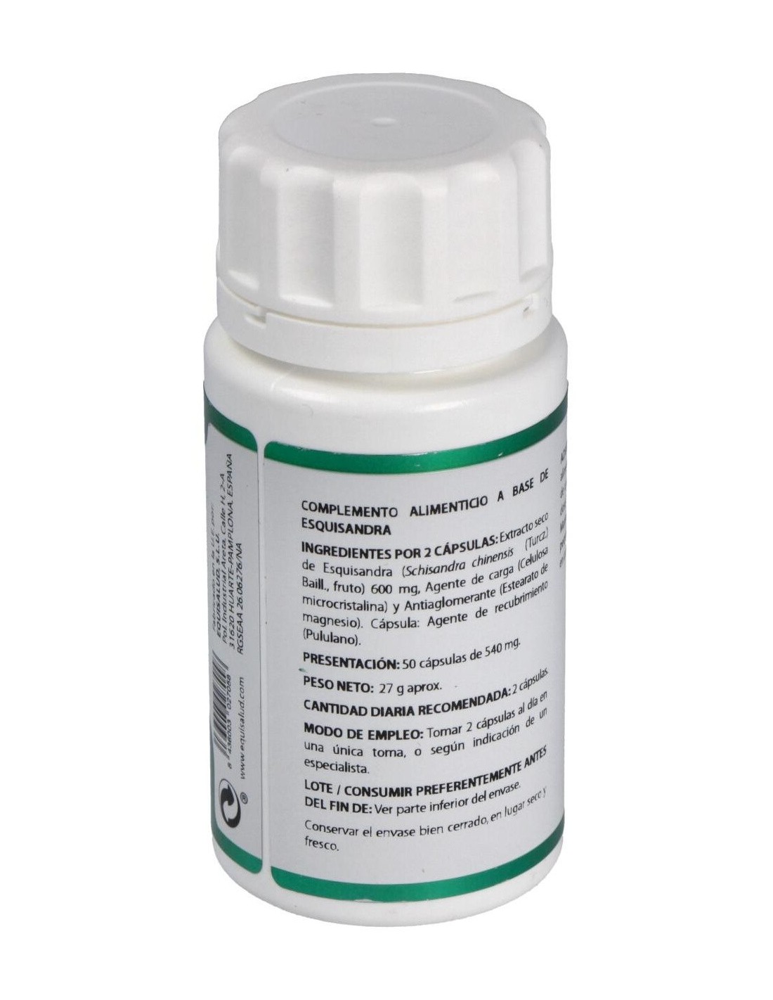 ESQUISANDRA EXTRACTO SECO (SCHISANDRA CHINENSIS (TURCZ,) BAILL., FRUTO, 9% ESQUISANDRINAS), 300 MG. EXCIPIENTES TECNOLÓGICOS: CELULOSA MICROCRISTALINA (AGENTE DE CARGA), C.S. Y ESTEARATO DE MAGNESIO (ANTIAGLOMERANTE), C.S. ENVOLTURA: POLISACÁRIDO DE ORIGEN VEGETAL (PULULANO). NO CONTIENE GLUTEN, NI ALMIDÓN, NI TRANSGÉNICOS, NI COLORANTES. APTA PARA VEGETARIANOS, DIABÉTICOS Y PACIENTES CON DIETAS RESTRICTIVAS.