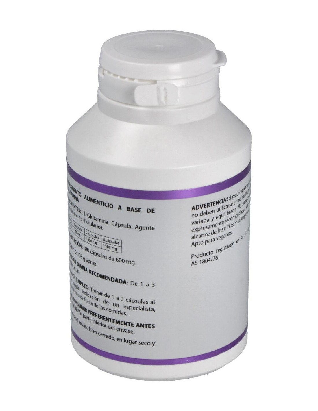 L-Glutamina 500 mg. Envoltura de polisacárido de origen vegetal (pululano).