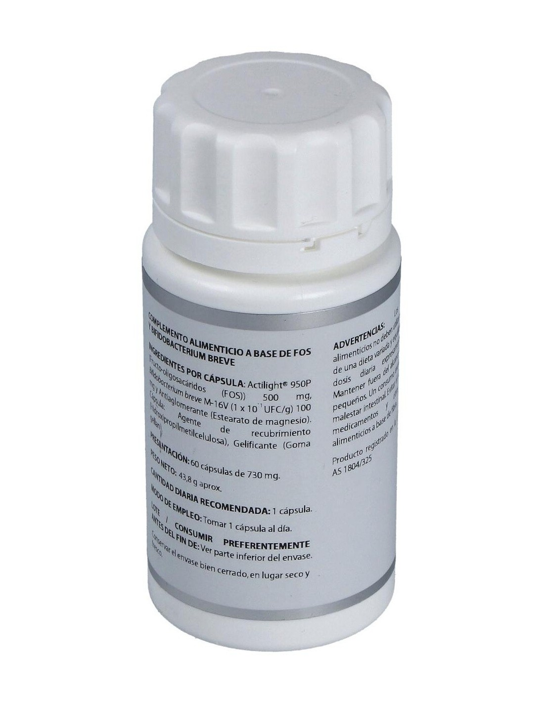 Bifidobacterium breve M-16V (1 x 1011 ufc/g) 100 mg. Excipientes tecnológicos: celulosa microcristalina (agente de carga), c.s. y estearato de magnesio (antiaglomerante), c.s. Envoltura: polisacárido de origen vegetal (pululano).
