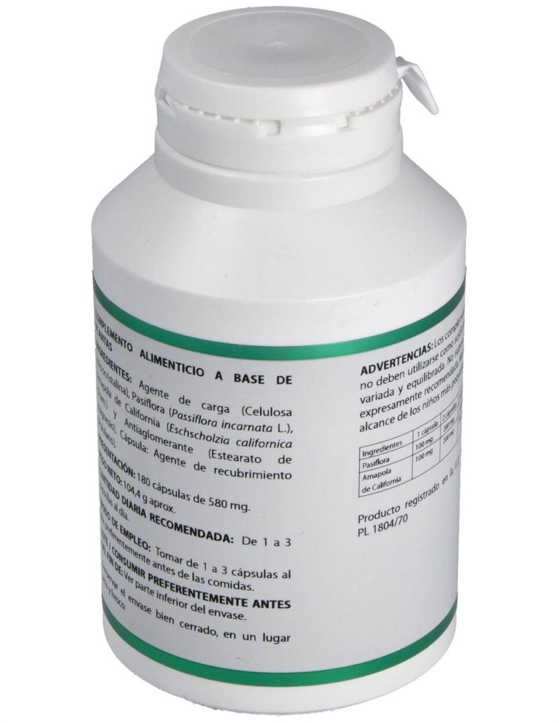 Complemento alimenticio a base de plantas. Favorece la relajación del sistema nervioso en casos de ansiedad, trastornos del sueño, etc. Apto para vegetarianos, diabéticos y pacientes con dietas restrictivas.
