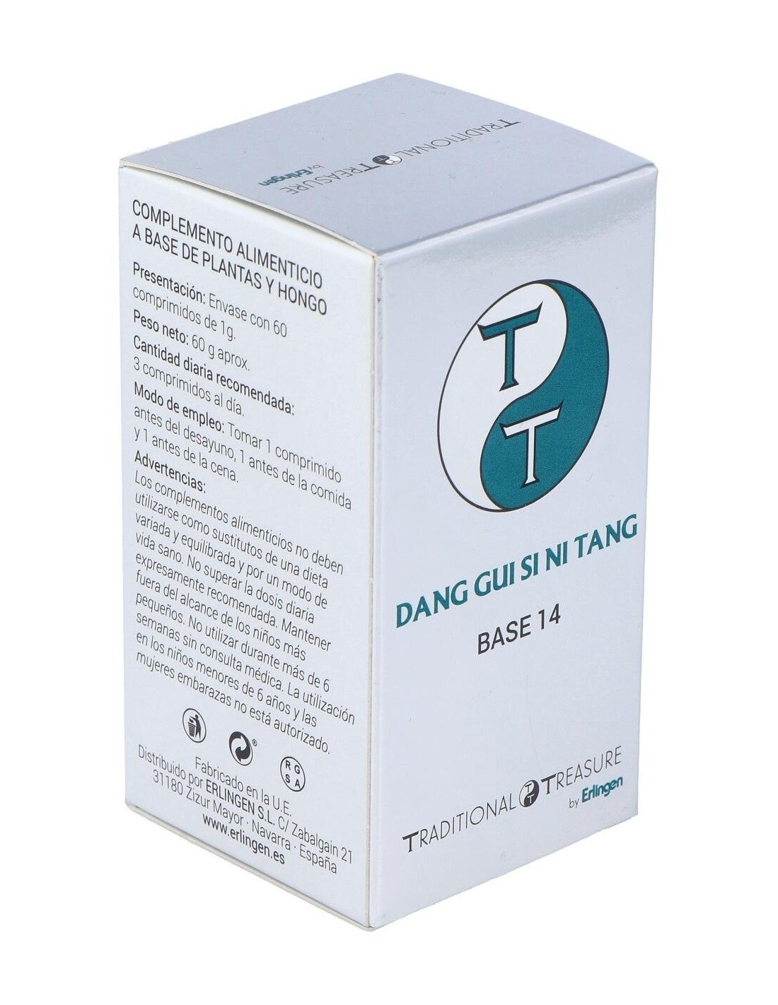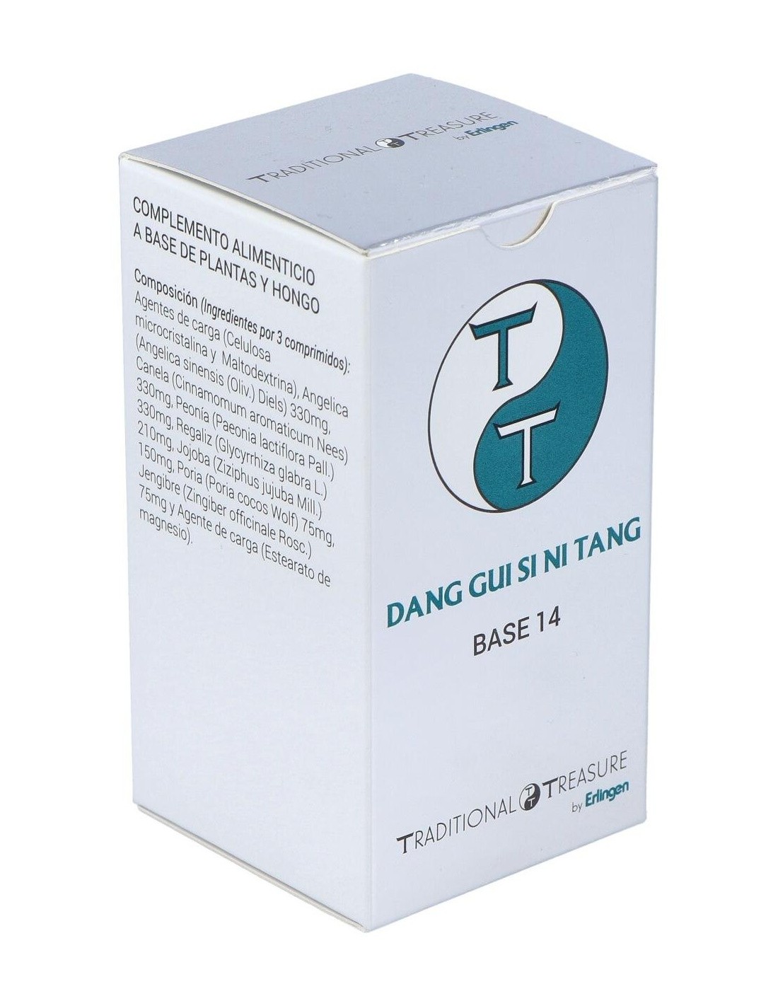 Agentes de carga (Celulosa microcristalina y Maltodextrina), Angélica (Angelica sinensis (Oliv.) Diels) 330 mg, Canela (Cinnamomum aromaticum Nees) 330 mg, Peonía (Paeonia lactiflora Pall.) 330 mg, Regaliz (Glycyrrhiza glabra L.) 210 mg, Jojoba (Ziziphus jujuba Mill.) 150 mg, Poria (Poria cocos Wolf) 75 mg, Jengibre (Zingiber officinale Rosc.) 75 mg y Agente de carga (Estearato de magnesio).