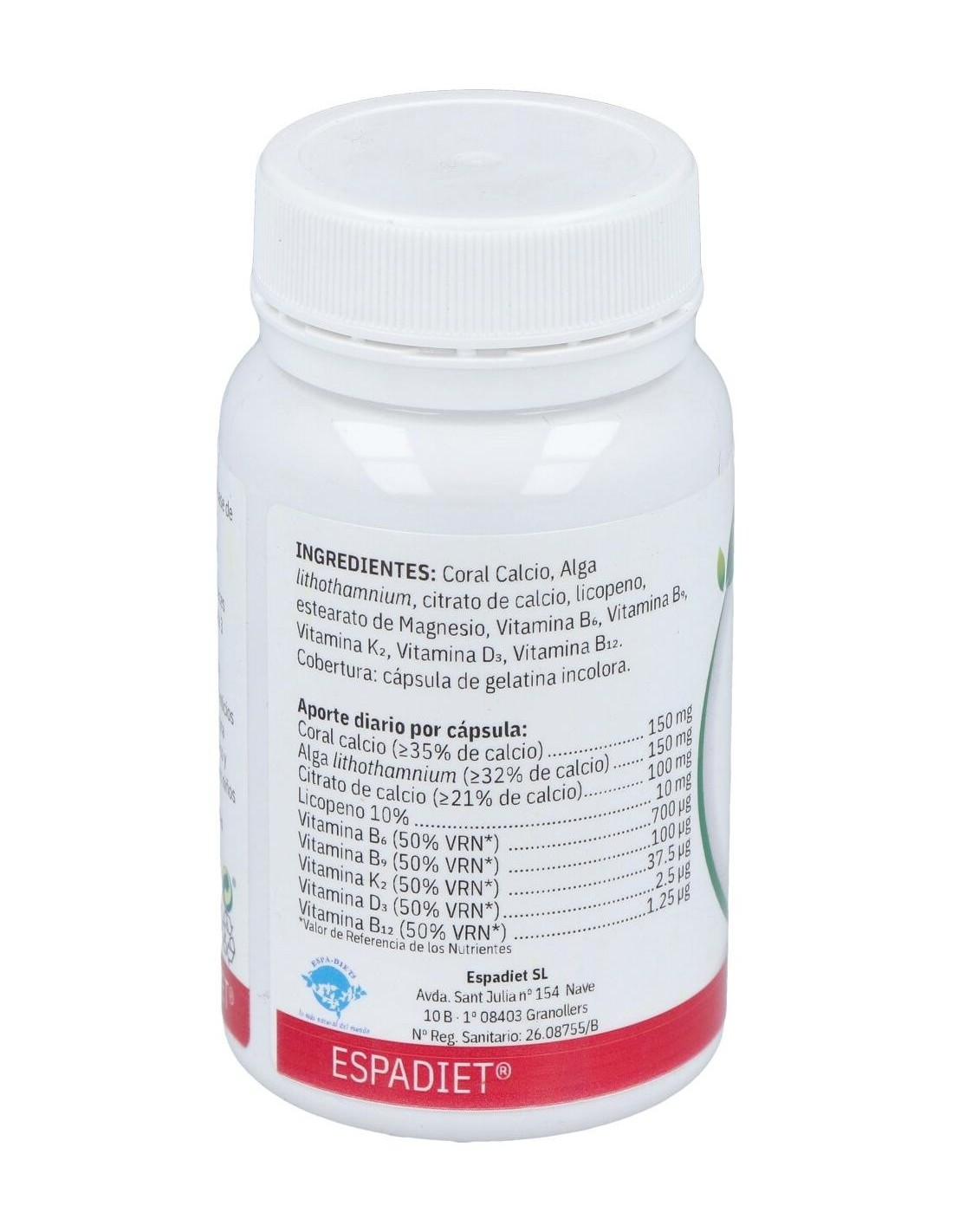 Coral calcio, alga lithothamnium, citrato de calcio, licopeno, vitamina B6, vitamina B9, vitamina K2, vitamina D3, vitamina B12.