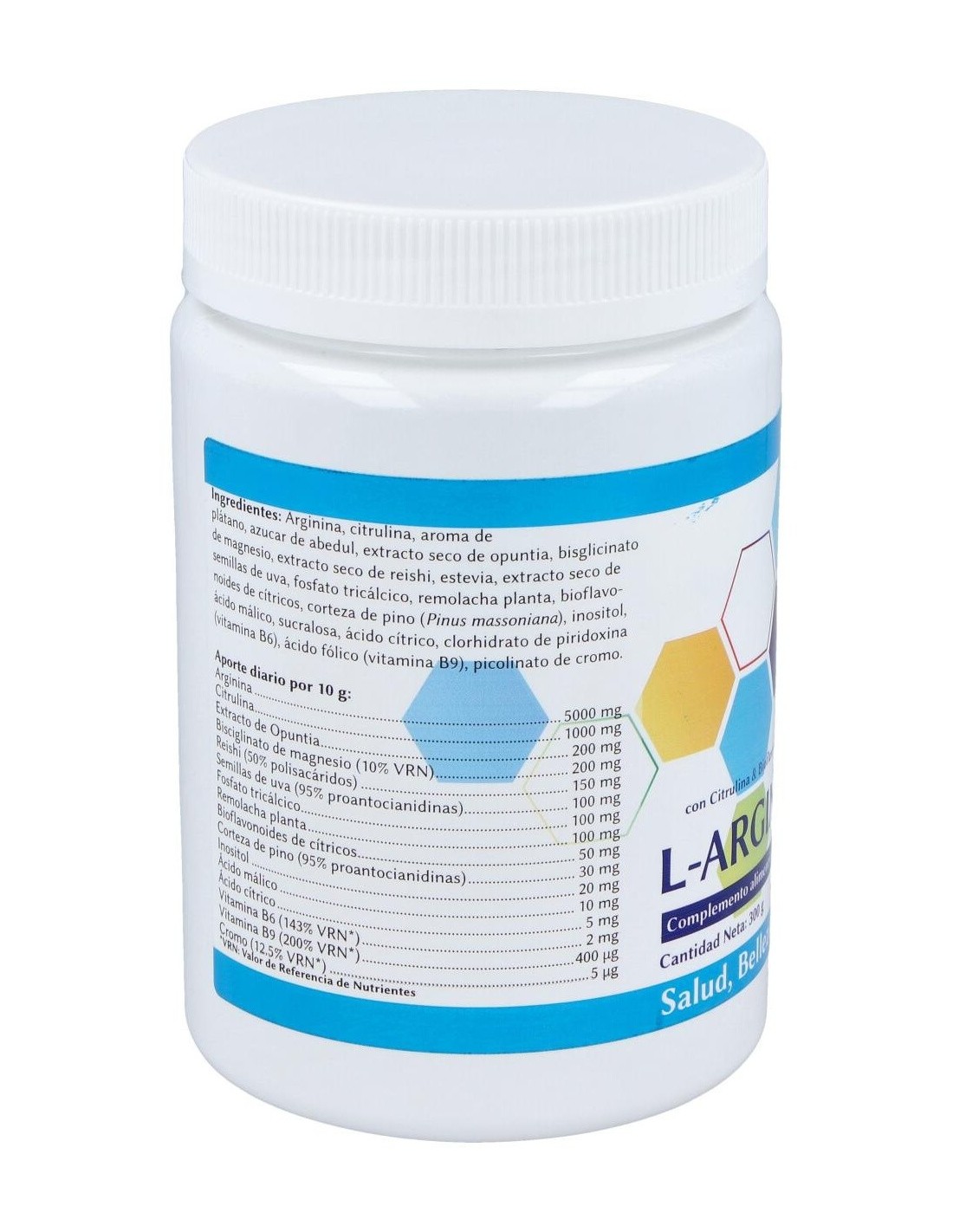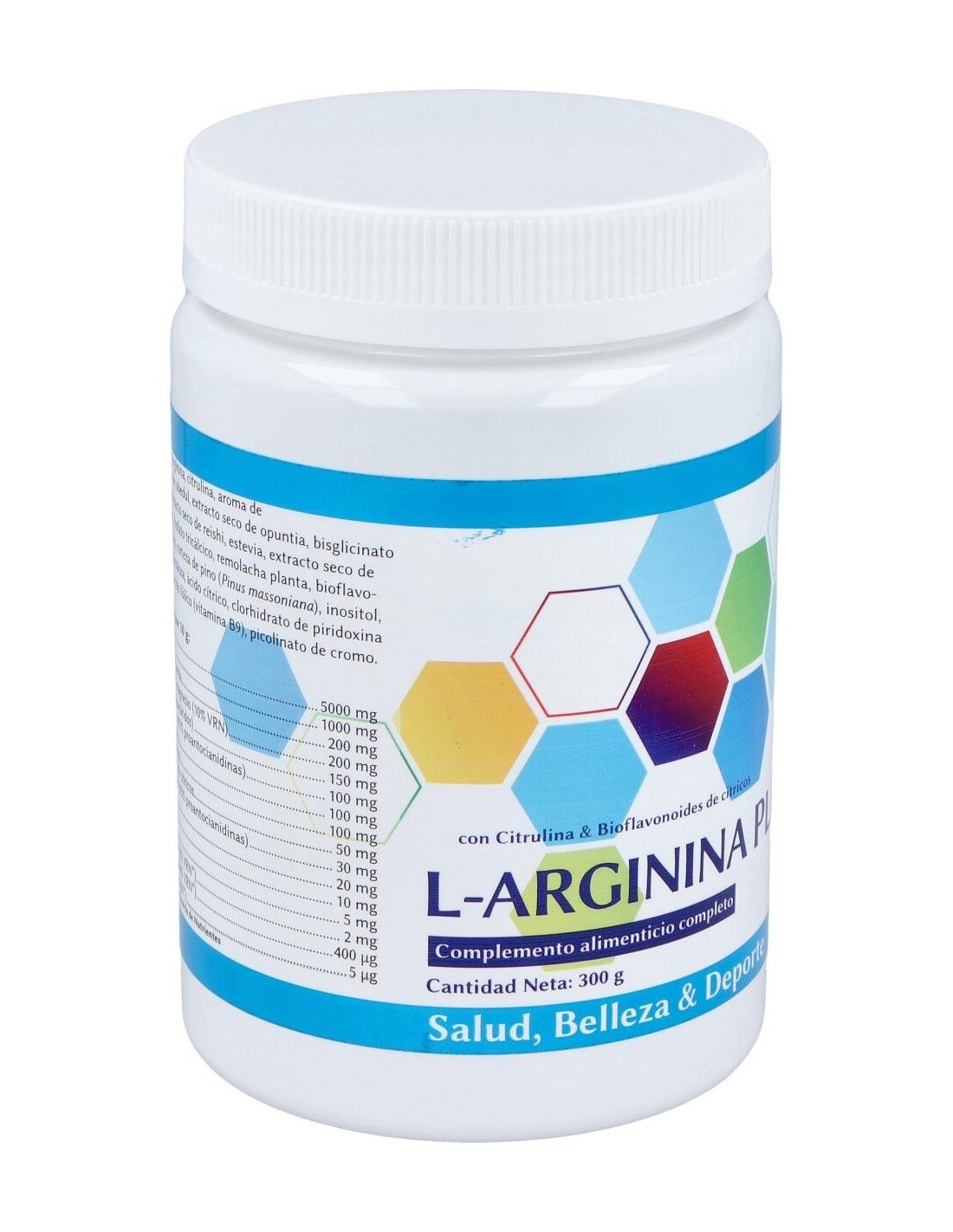 Complemento alimenticio a base de L-arginina, citrulina y bioflavonoides de cítricos. L-ARGININA PLUS 300gr.