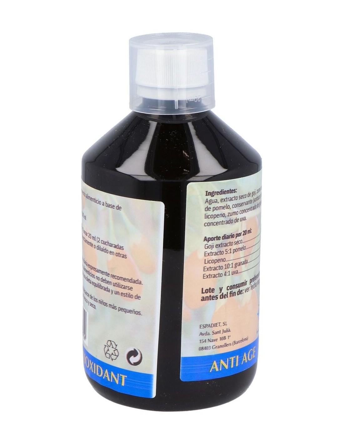 Agua, Extracto De Goji, Jugo De Pomelo Concentrado, Zumo De Granada Concentrado, Zumo De Uva Negra Concentrado, Licopeno, Conservante (Sorbato Potásico).