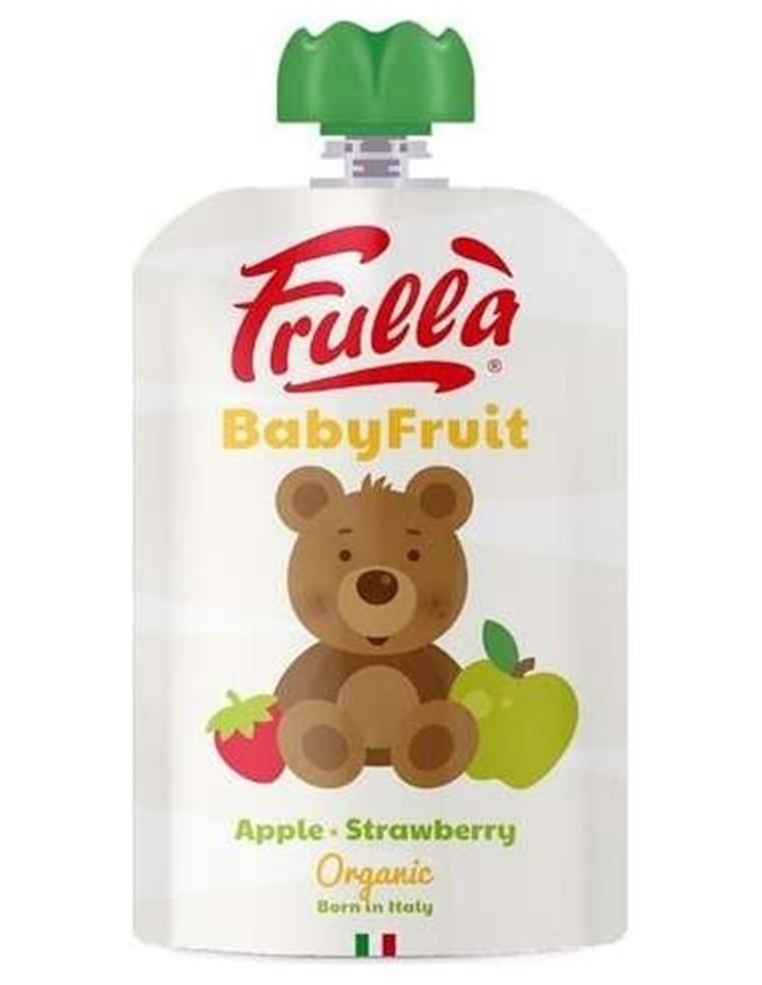 FRULLAPuré de manzana y fresa procedentes de cultivo ecológico sin conservantes, aditivos ni azúcar añadido. Presentado en un práctico envase con cierre para disfrutar en cualquier momento del día.