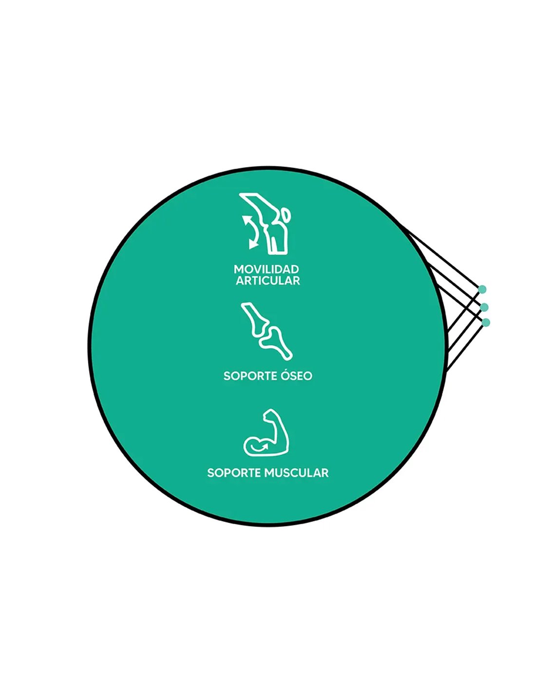 Complemento líquido con sabor a manzana y mango, a base de nutrientes para las articulaciones. La vitamina D contribuye al mantenimiento de los huesos en condiciones normales y al funcionamiento normal de los músculos. La condroitina puede suponer un apoyo para las articulaciones.
