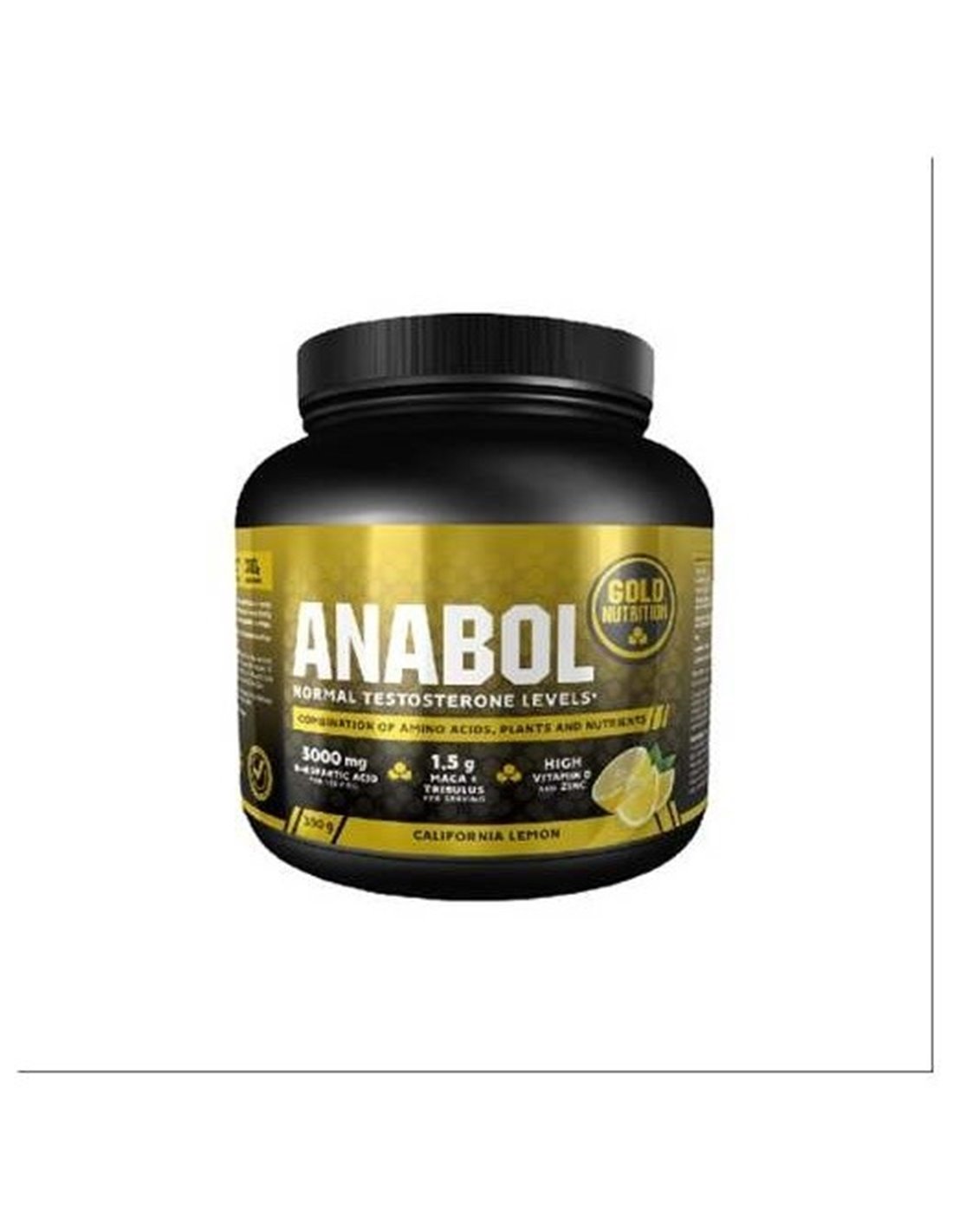 GOLD NUTRITIONAnabol es una fórmula para la testosterona con extractos de plantas combinados con zinc, vitamina D y ácido D-aspártico. Contiene extractos de Tribulus terrestris y Fenugreek, ambos con alto contenido en saponinas, y Maca. El zinc contribuye a mantener niveles normales de testosterona.