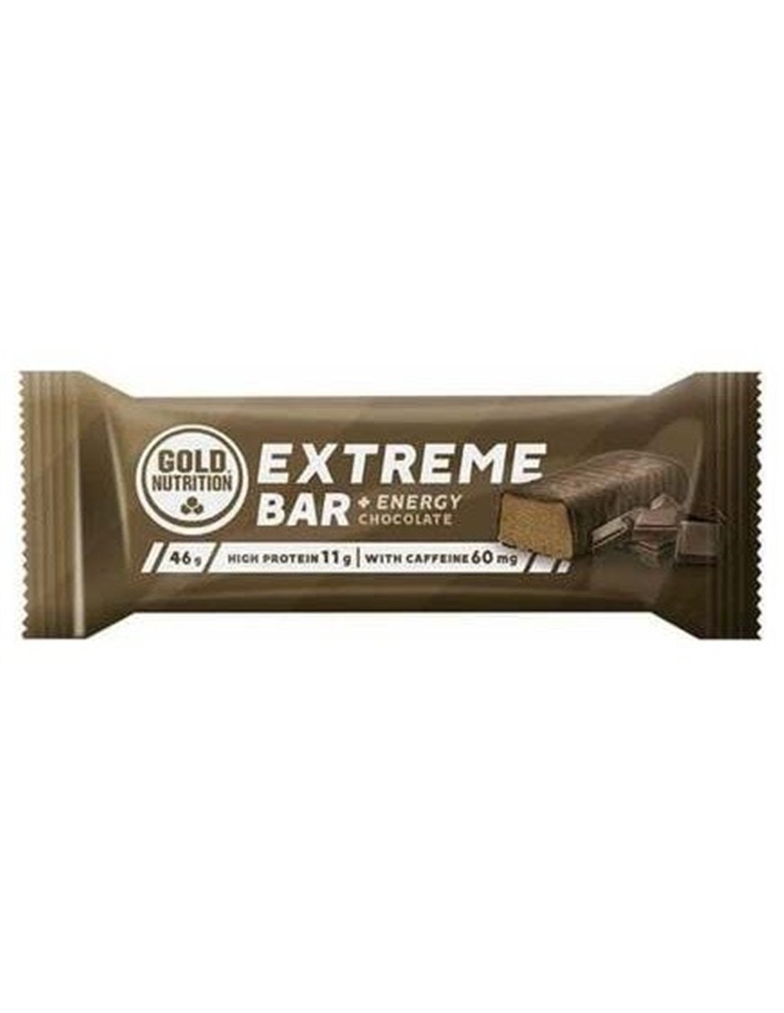 GOLD NUTRITIONExtreme Bar proporciona una fuente rápida de energía, ya sea a través de los azúcares de absorción rápida a través de una buena dosis de cafeína. Aproximadamente el 58% de la energía contenida en la barra extrema proviene de los hidratos de carbono, a la que se añadió un 25% de proteína de alta calidad en su composición, para ayudar en la recuperación muscular y 60 mg de cafeína.