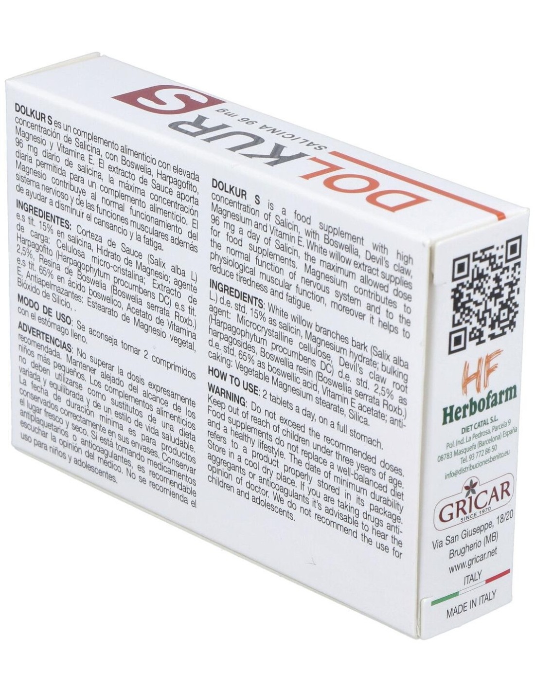 Sauce e.s tit. del cual Salicina, Harpagófito e.s tit. 2,5%, Boswelia e.s tit. 65%, Magnesio, Vitamina E.