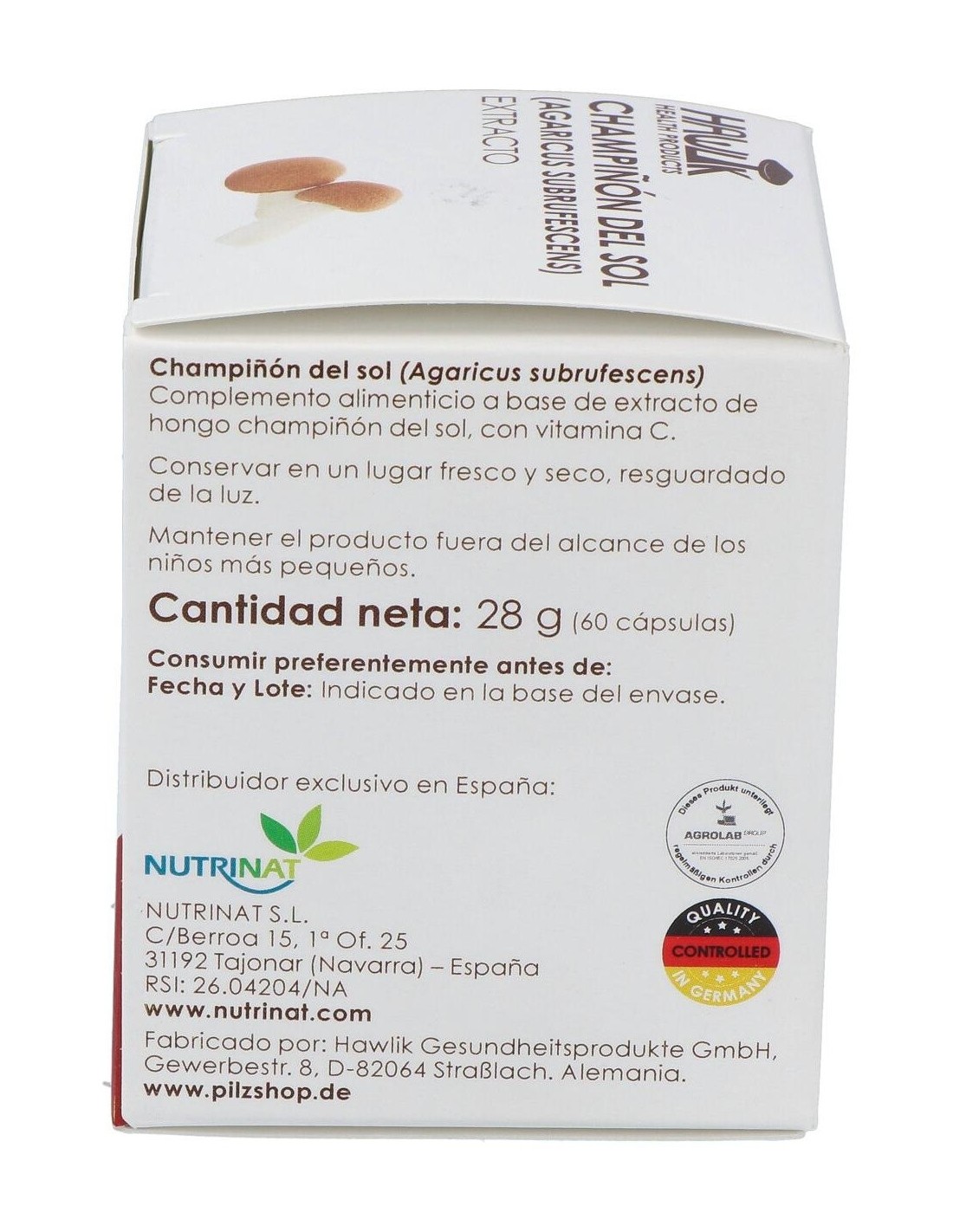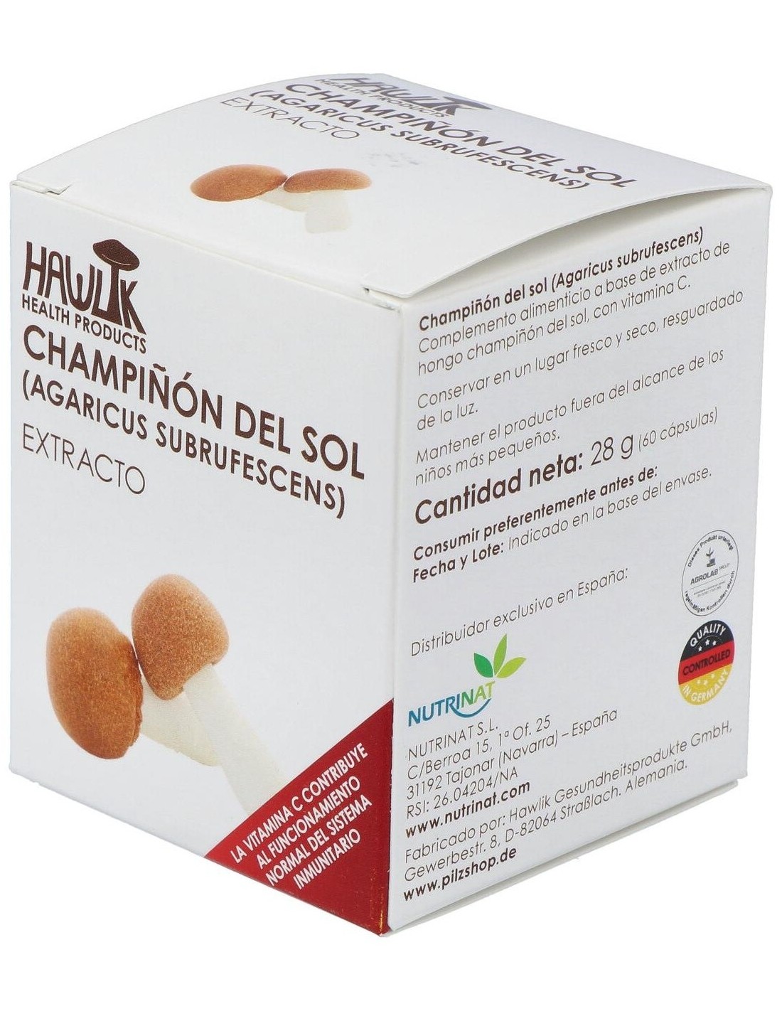 Champiñón Del Sol (Agaricus Subrufescens). Extracto Puro. Bio 60 Vcáps de Hawlik