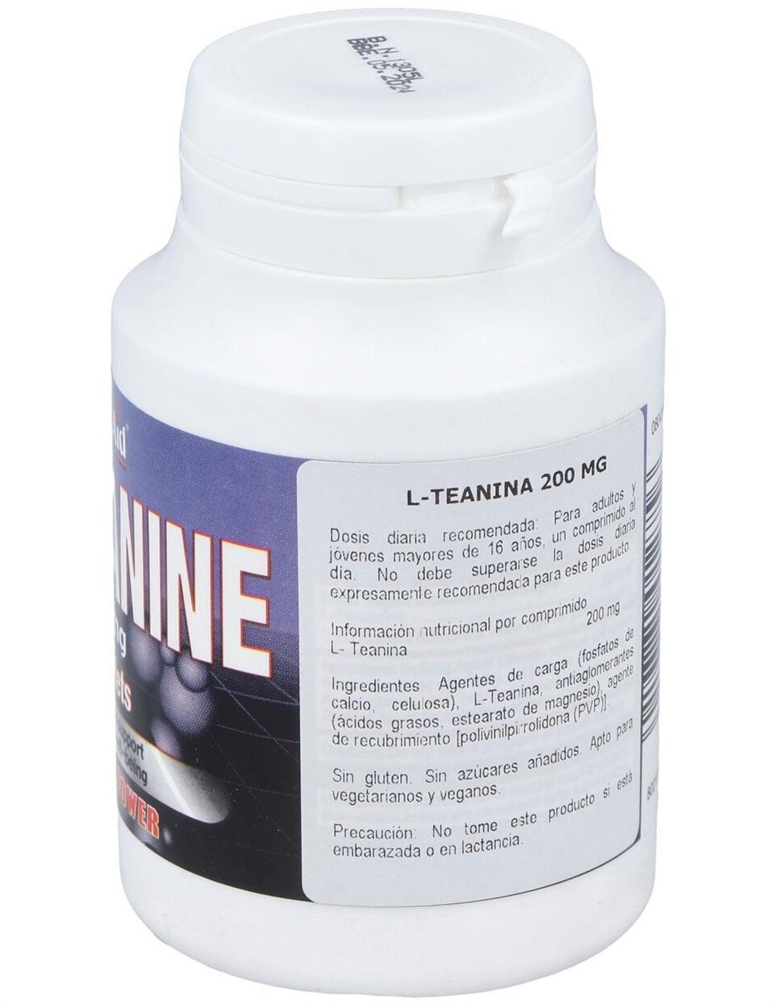 Suplemento alimenticio a base de L-Teanina, nutriente contribuye al normal mantenimiento del sistema nervioso. Apto para vegetarianos y veganos.