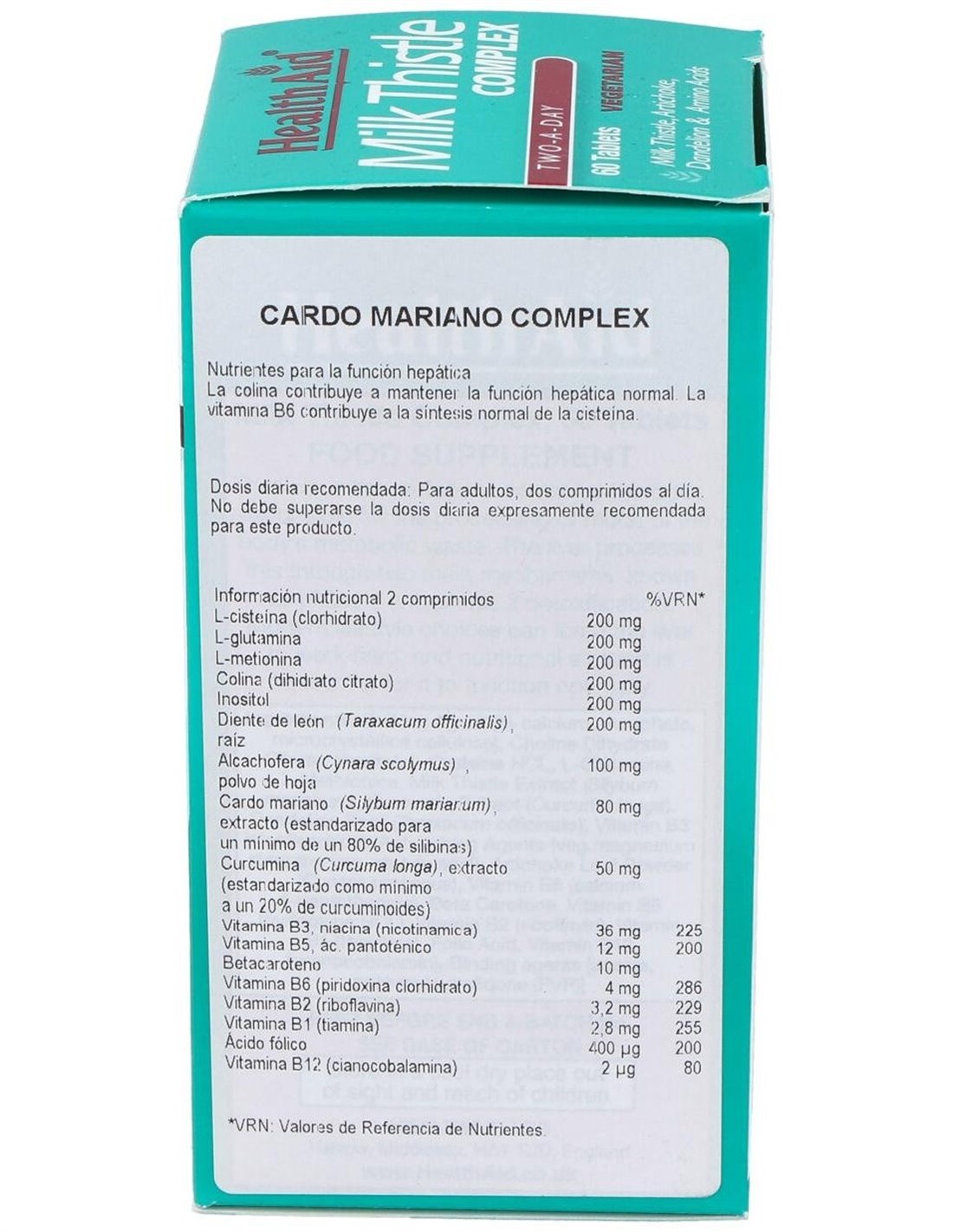 Raíz de diente de león (200 mg), L-Glutamina (200 mg), L-Metionina (200 mg), L-Cisteína (200 mg), Polvo de hoja de Alcachofera (100 mg), Extracto de Cardo Mariano (80 mg), Extracto de Curcumina (50 mg), Betacaroteno (20 mg), Celulosa microcristalina, Estearato de Magnesio Vegetal, Acacia, polivinilpirrolidona, Fosfato dicálcico, Ácido esteárico vegetal.