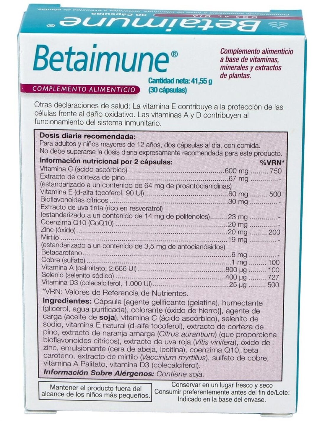 Betacaroteno.............................................6 mg